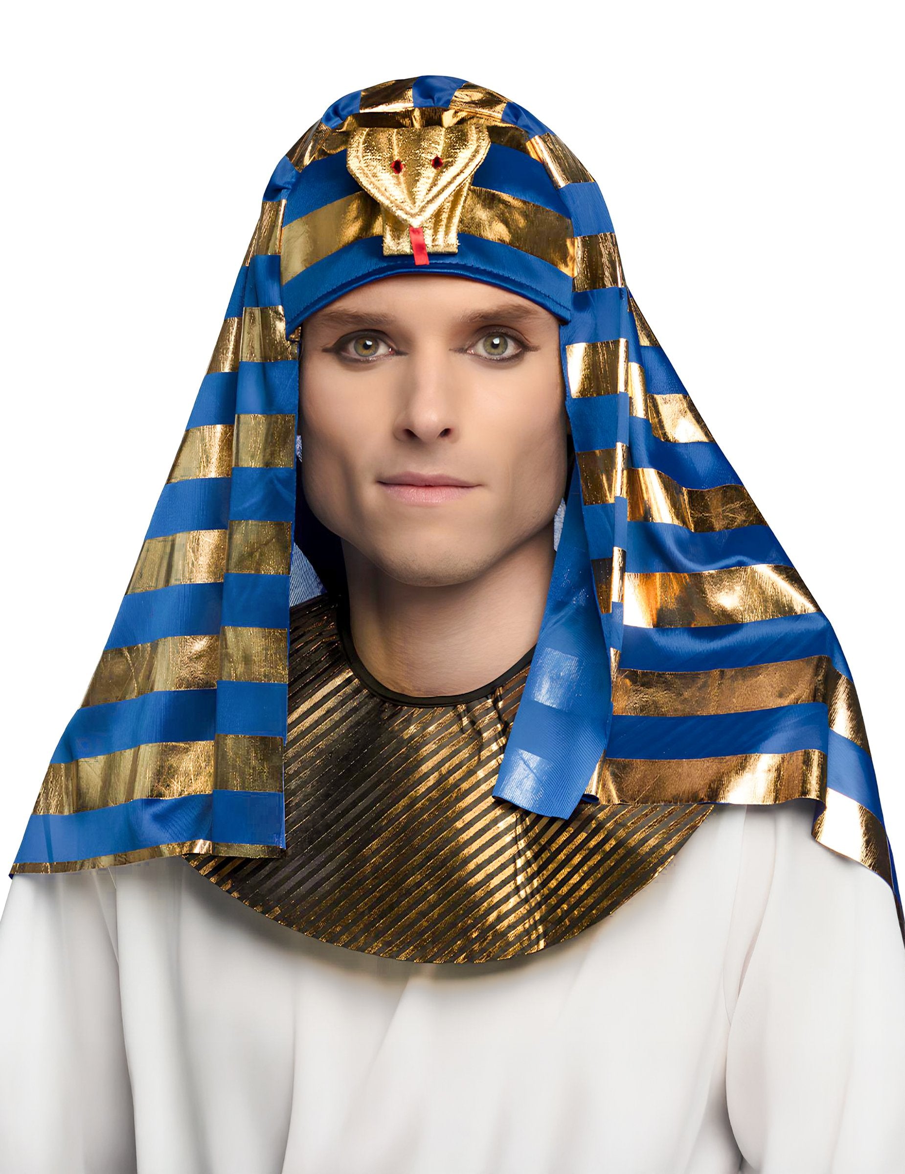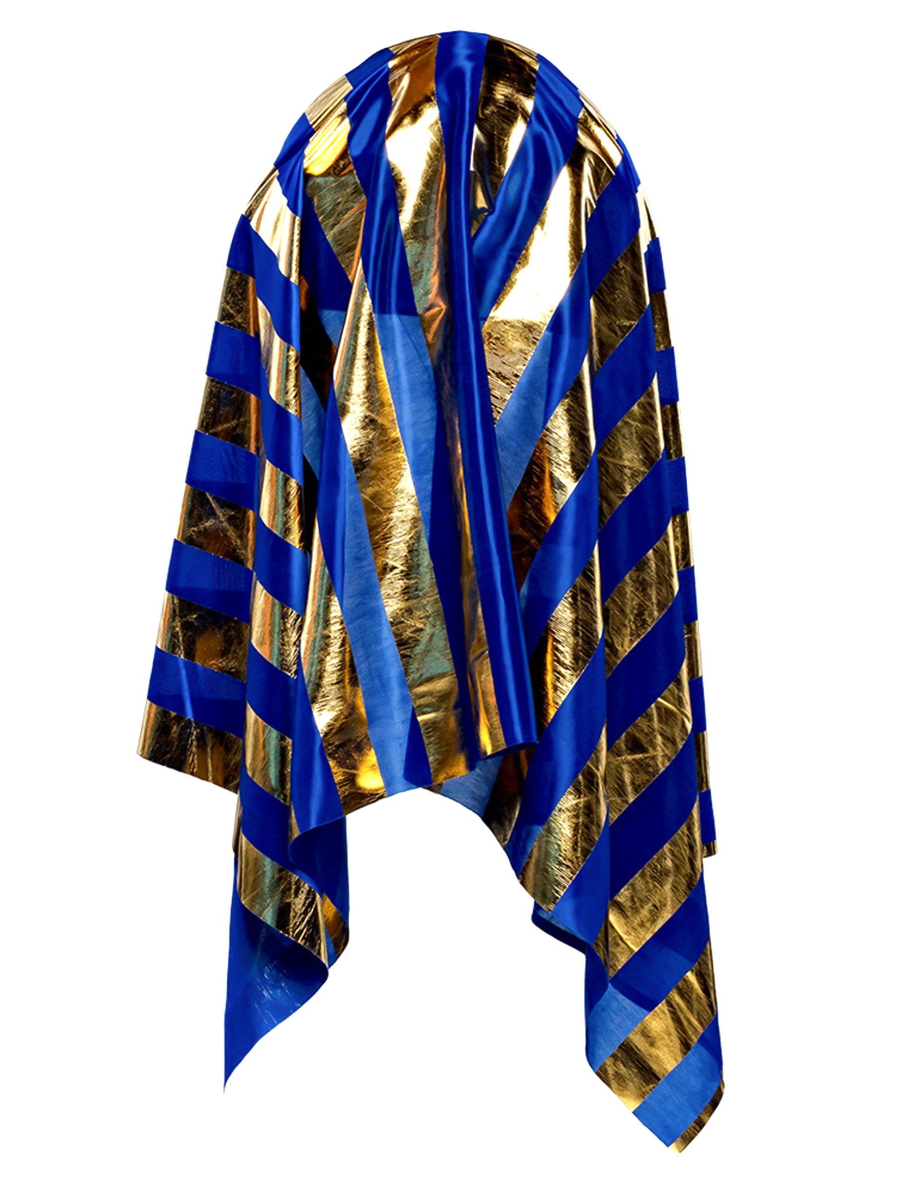 Proměňte se v opravdového egyptského vládce s touto nádhernou faraonskou čelenkou s zářivě modrými a zlatými pruhy. Zdobená zlatou kobrou na čele dodá vašemu kostýmu majestátní a autentický nádech. S průměrem přibližně 58 cm, Je navržen tak, aby pohodlně padl většině dospělých. Je ideální pro doplnění egyptského kostýmu a bude se perfektně hodit na tematické večírky, karnevaly, historické rekonstrukce nebo maškarní večírky.