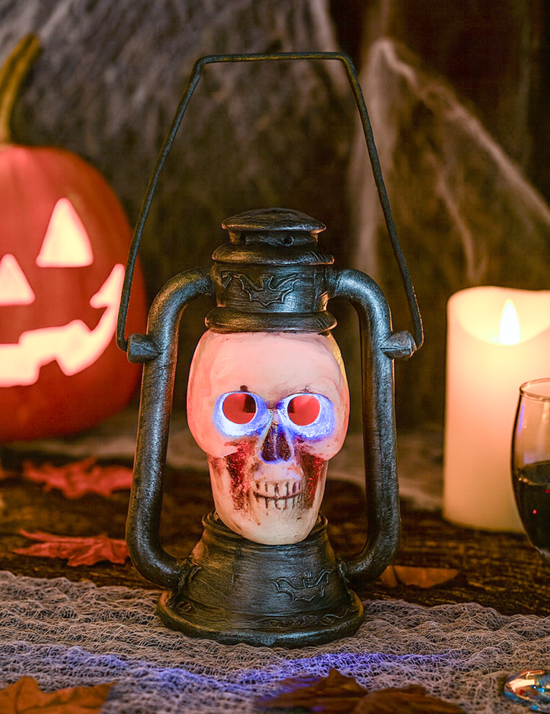 Vneste do své výzdoby strašidelnou atmosféru s touto realisticky navrženou lucernou s motivem lebky. Její strašidelná lebka svítí ve 3 měnících se barvách a vytváří tak tajemný a tajemný efekt. Je praktická a lehká, snadno se přenáší díky rukojeti a měří přibližně 26 x 18. cm. Ideální pro zdobení strašidelného domu, halloweenské zahrady nebo jako doplnění strašidelného kostýmu.