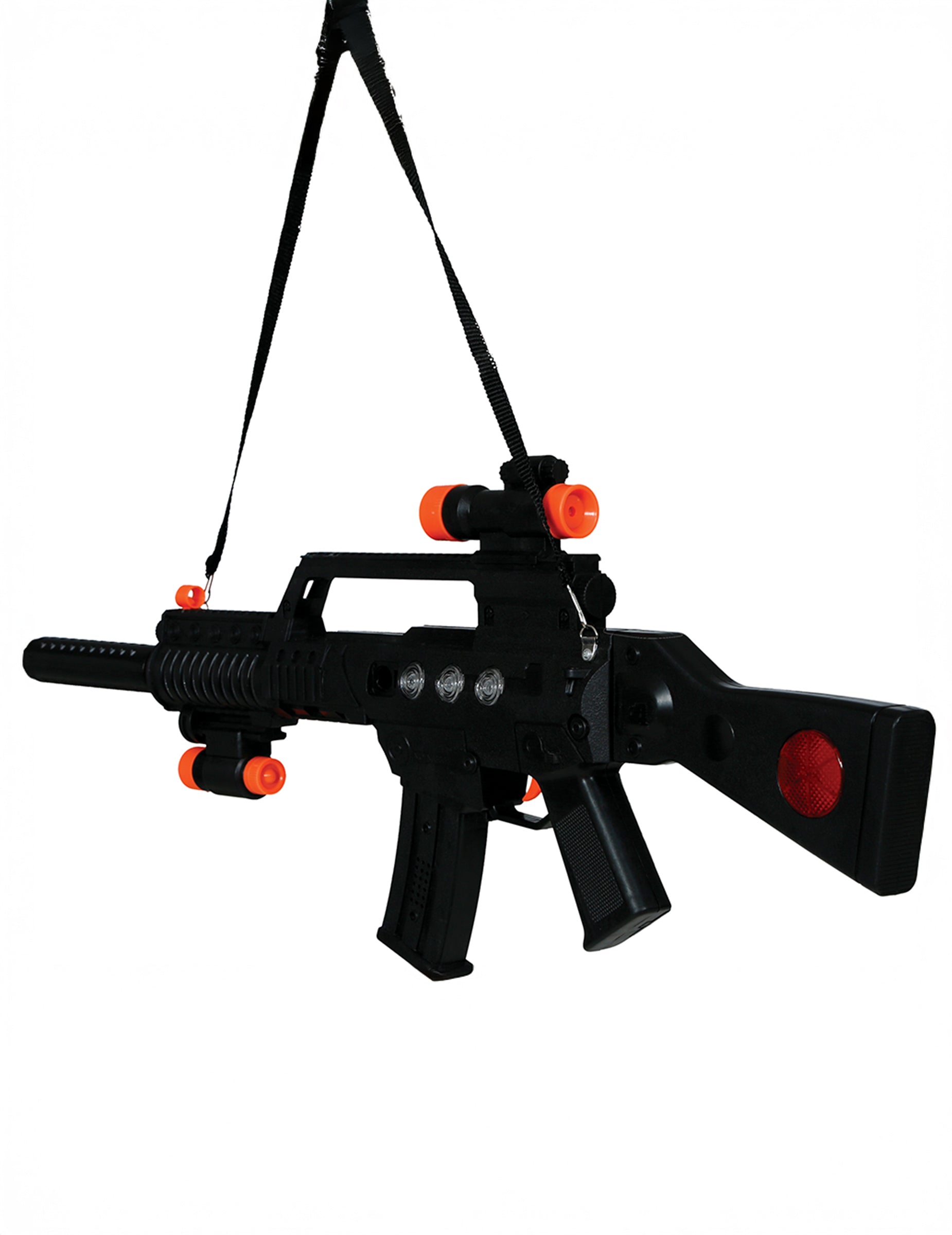 Plongez dans l’action avec ce fusil d’assaut factice de 70 cm équipé de sons réalistes et de lumières intégrées. Grâce à sa lanière de transport, il est pratique à porter et parfait pour compléter un déguisement de soldat, de commando ou de militaire. Idéal pour le carnaval, Halloween, un spectacle ou une fête costumée, il apporte une touche spectaculaire à vos mises en scène.