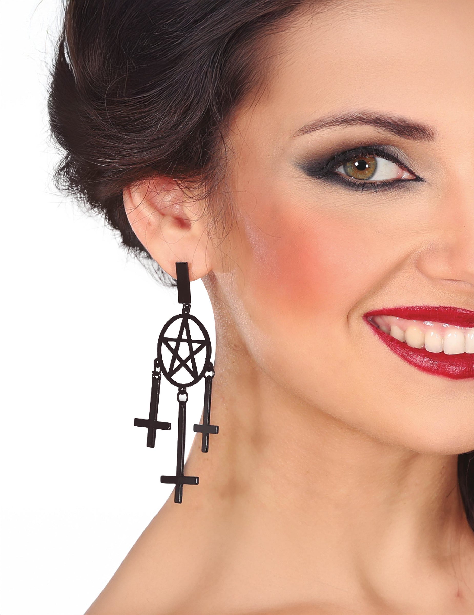 Tyto černé gotické náušnice pro dospělé jsou ideálním doplňkem, který dodá okultní a tajemný nádech kostýmu čarodějnice, upírky nebo temné kněžky na Halloween.
