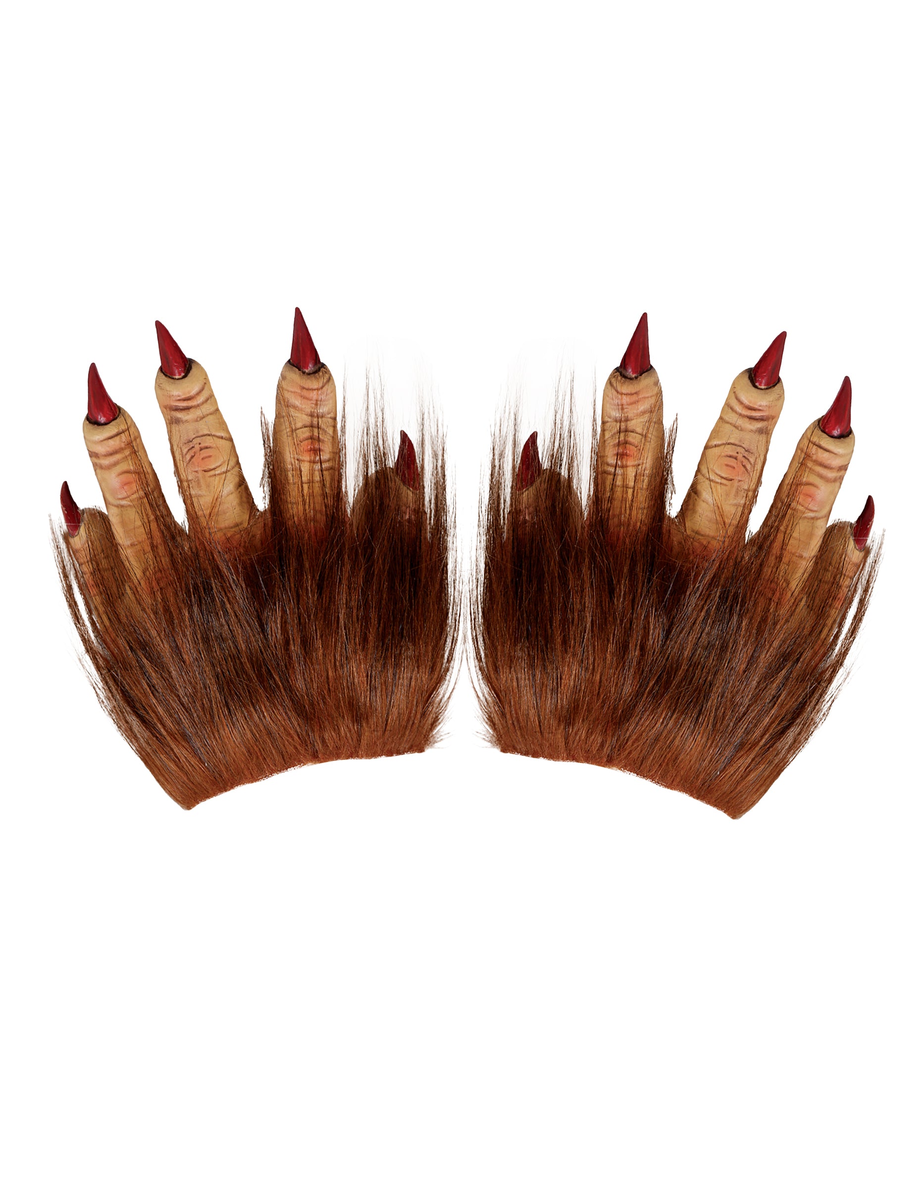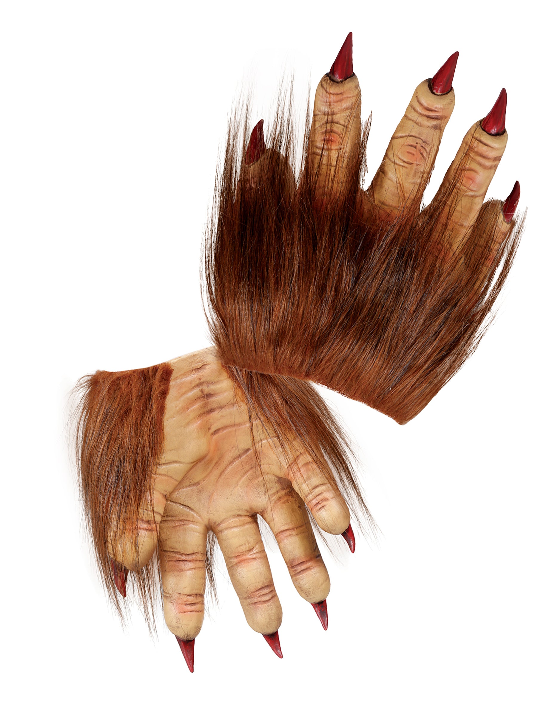 Realistická textura latexu v kombinaci s hustou umělou srstí vytváří ohromující efekt: dlouhé a špičaté drápy, svalnaté prsty a vzhled na pomezí člověka a zvířete. Snadno se navlékají, dobře zakrývají zápěstí a maskují přechod mezi kostýmem a kůží.