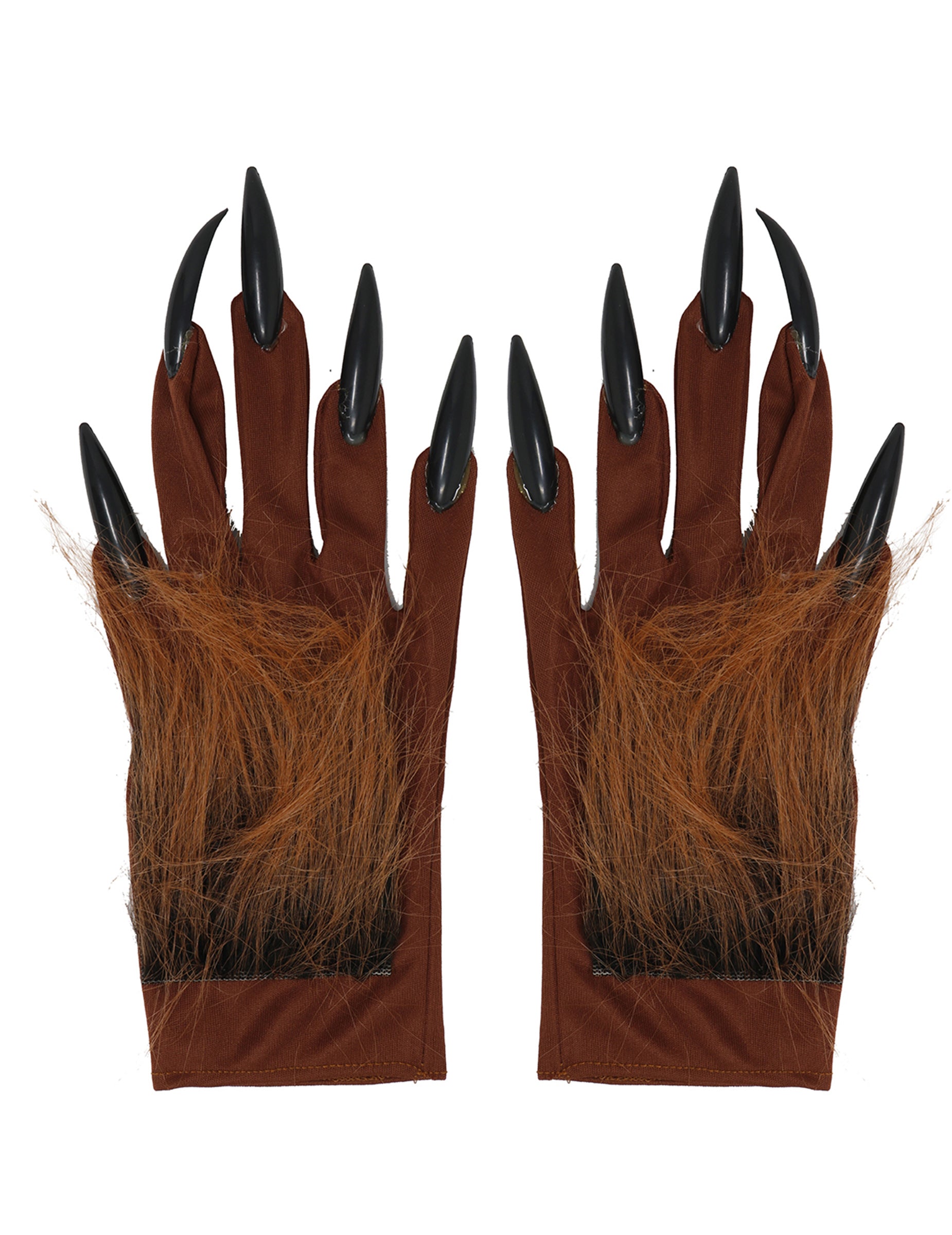 Tyto vlkodlačí rukavice jsou pro dospělé. Jsou z hnědé látky, na hřbetech rukou je dlouhá umělá srst pro napodobení vlkodlačí kožešiny.