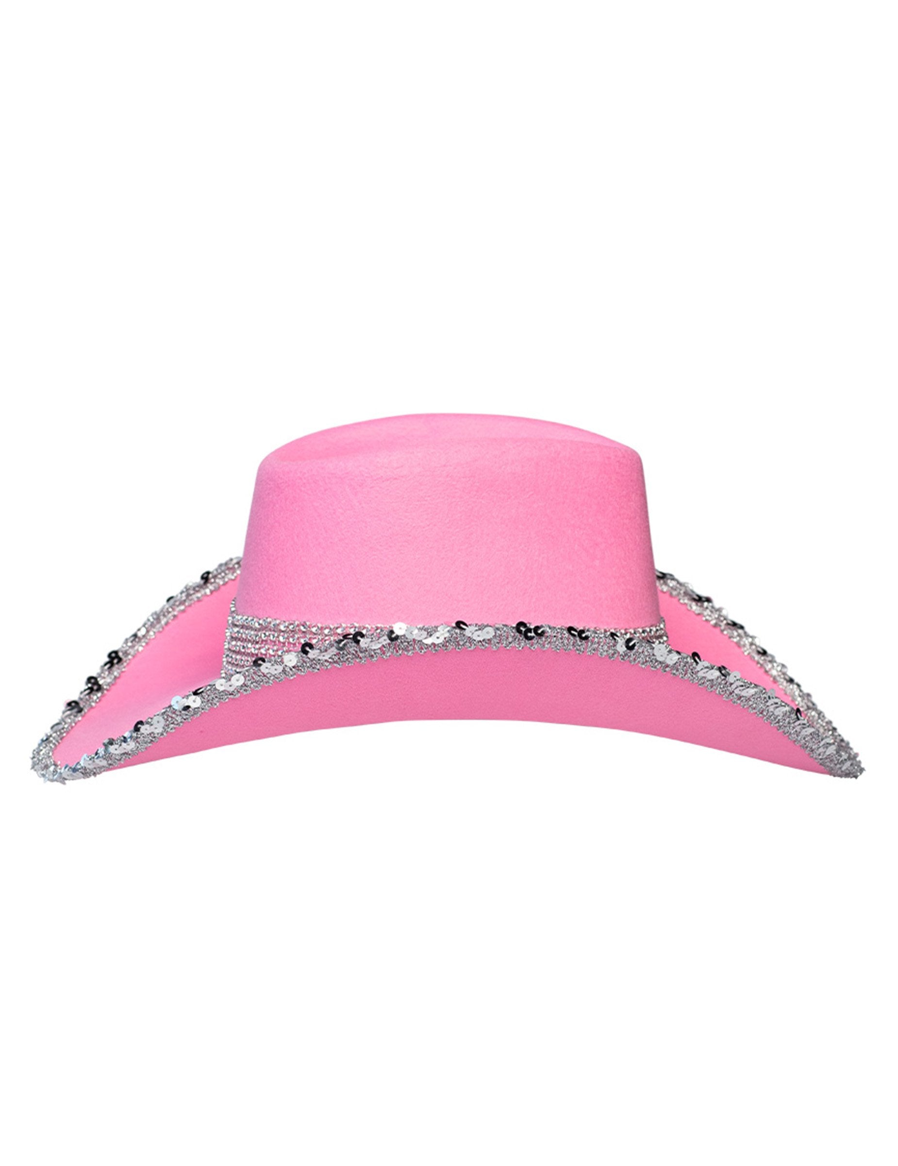 Tento světle růžový kovbojský klobouk pro dospělé je perfektním doplňkem na rozlučku se svobodou, venkovní festival nebo slavnostní večer. Jeho měkký semišový efekt, třpytivý pásek zdobený kamínky a stříbrné lemování působí elegantně i zářivě. Perfektní volba pro doplnění trendy kovbojského outfitu, ať už na rozlučku se svobodou, karneval, Silvestra nebo nezapomenutelné setkání s přáteli.