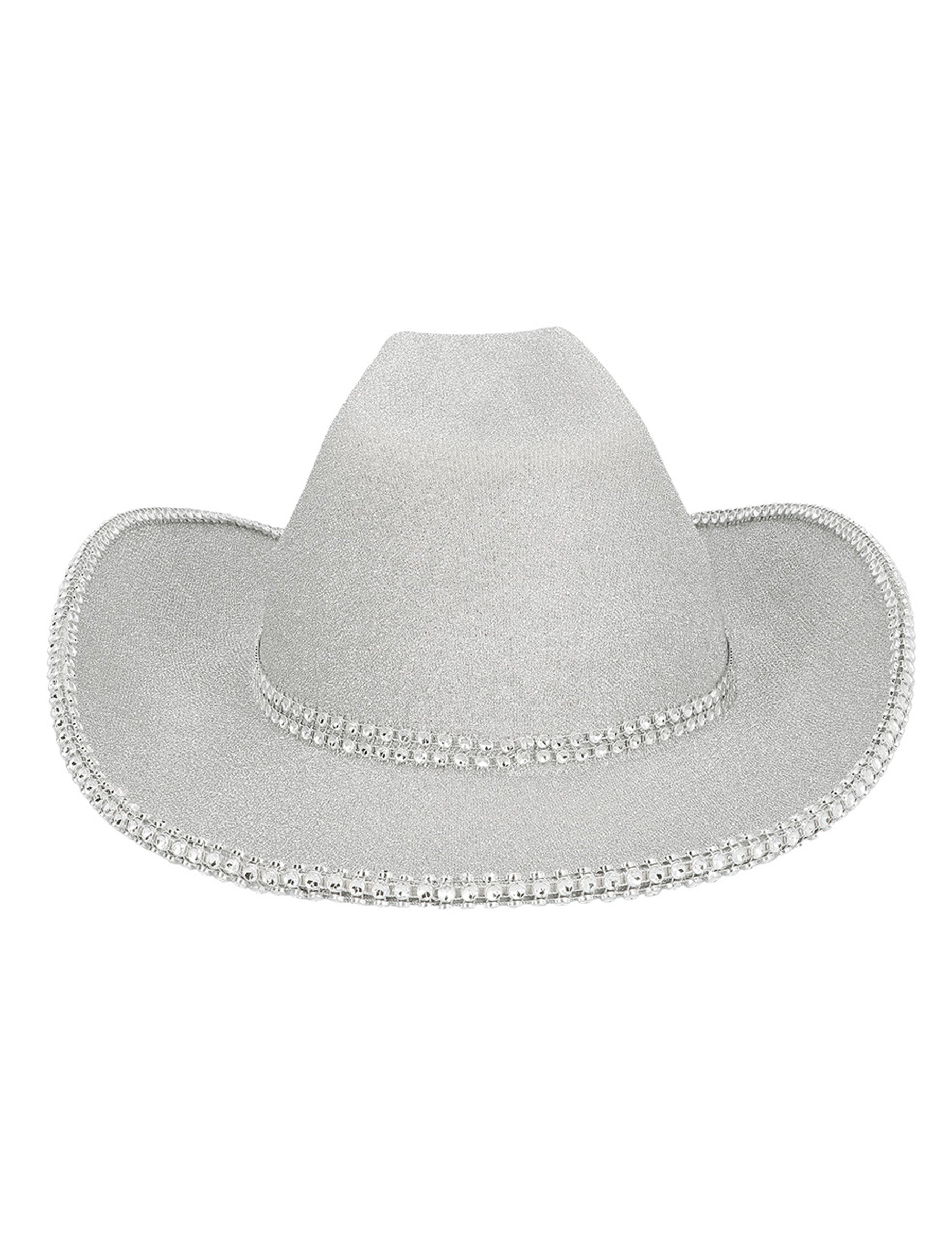Tento stříbrný kovbojský klobouk s flitry dodá vašim kostýmům nádech lesku a zábavy. Ozdobený třpytivými kamínky po okrajích kombinuje westernový styl s slavnostním a zářivým vzhledem. Ideální na maškarní večírek, karneval nebo tematickou párty, tento klobouk vás rozzáří jako hvězda.