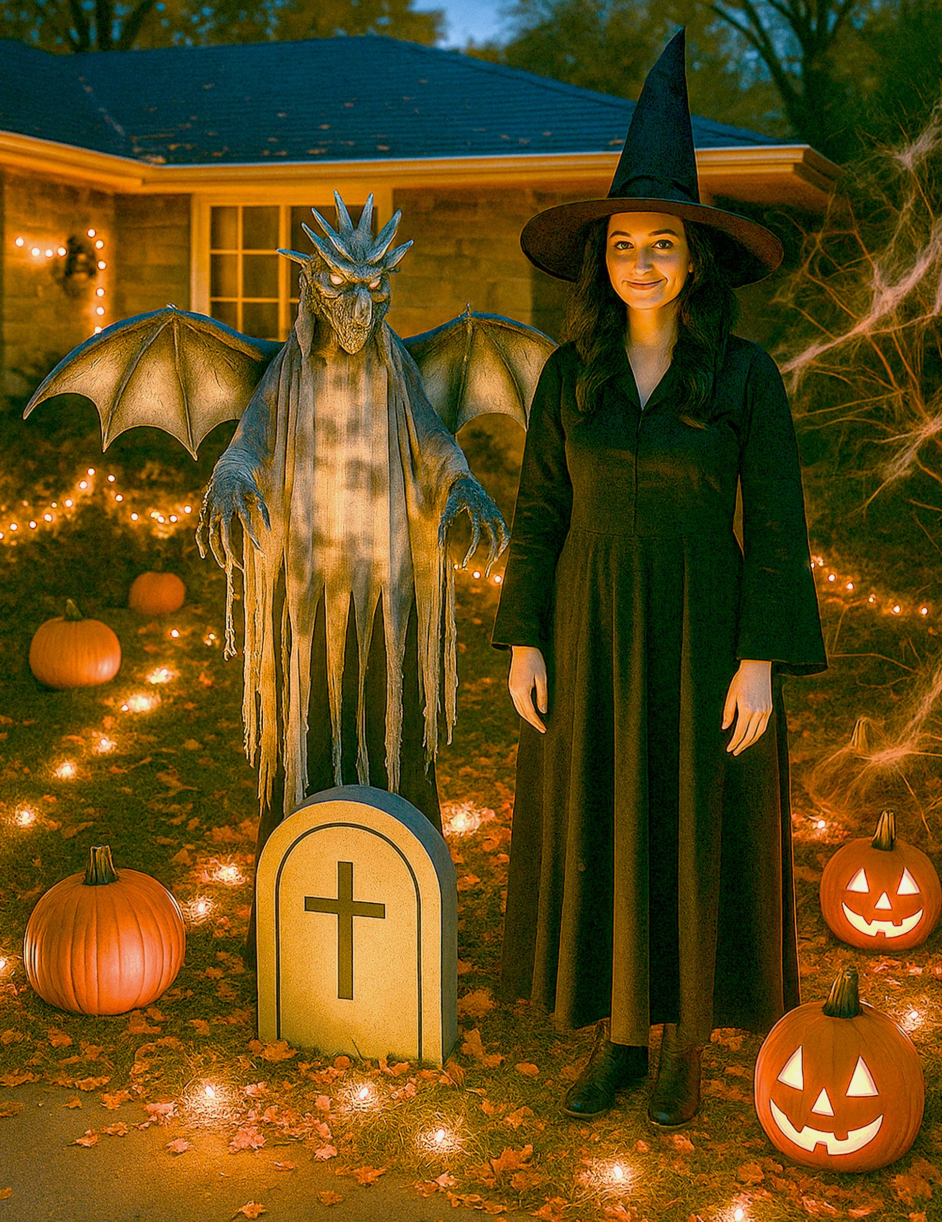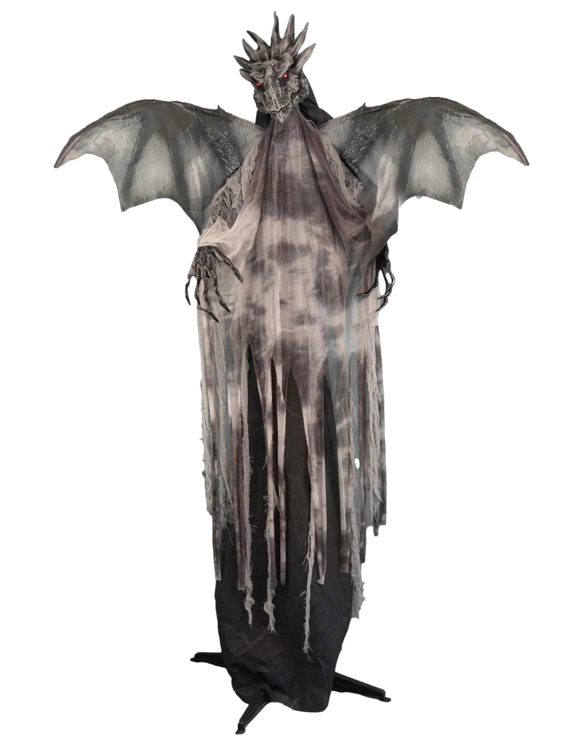 Vneste do sebe epický nádech Halloween dekorace s tímto obří animovaný drak 175 cm. Jeho tyčící se křídla, děsivá tvář a zářící LED oči vytvářejí velkolepou přítomnost.