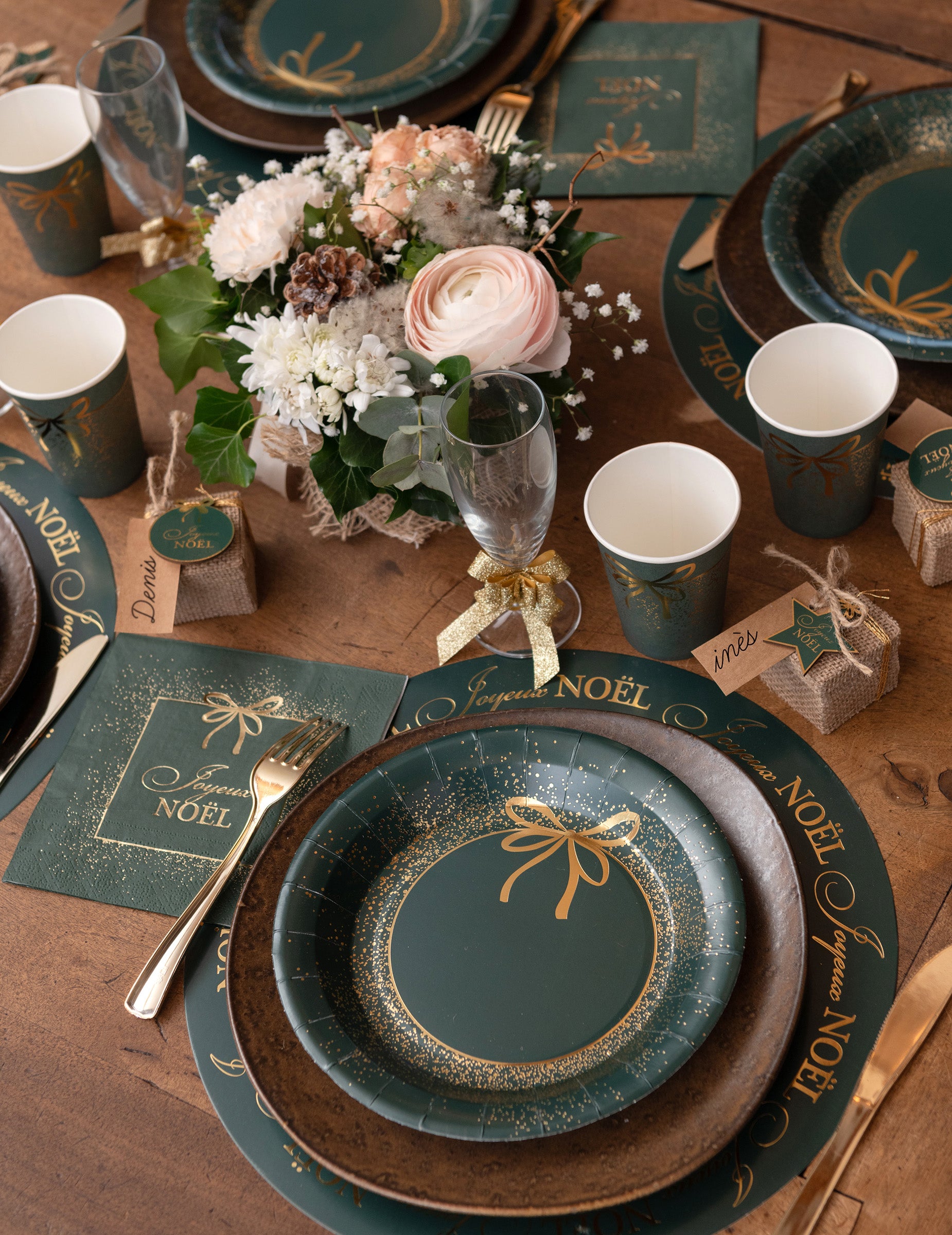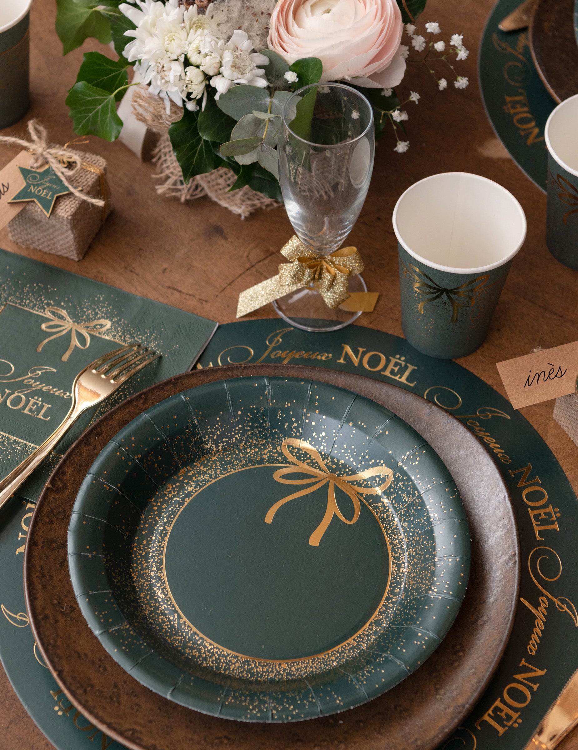 Vneste na svůj stůl dotek rafinovanosti s těmito **10 zelenými a zlatými vánočními talíři 23 cm** minimalist style. Jejich intenzivní jedlově zelenou barvu umocňuje zlatá ilustrace představující vánoční cetku s třpytivými detaily. Tyto talíře jsou vyrobeny z pevného kartonu a poskytují vynikající stabilitu pro vaše slavnostní recepce. Toto duo klasických barev nabízí dekoraci stolu, která je střídmá i luxusní. Jsou perfektní jako doprovod k **vánočnímu** jídlu s rodinou nebo ke koncoročnímu bufetu s přáteli.