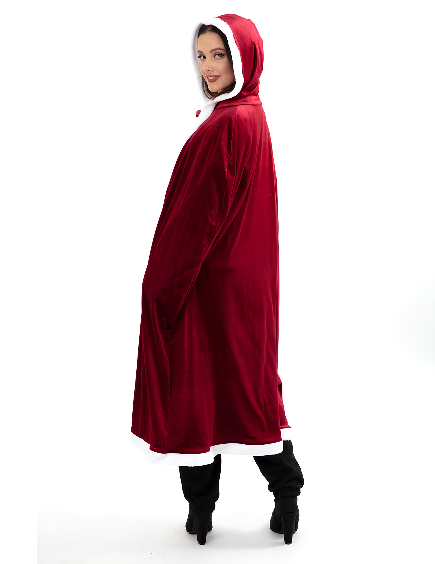 Vneste do svého outfitu dotek luxusu a tepla s tímto skvostem dlouhý vánoční plášť v červeném sametu.