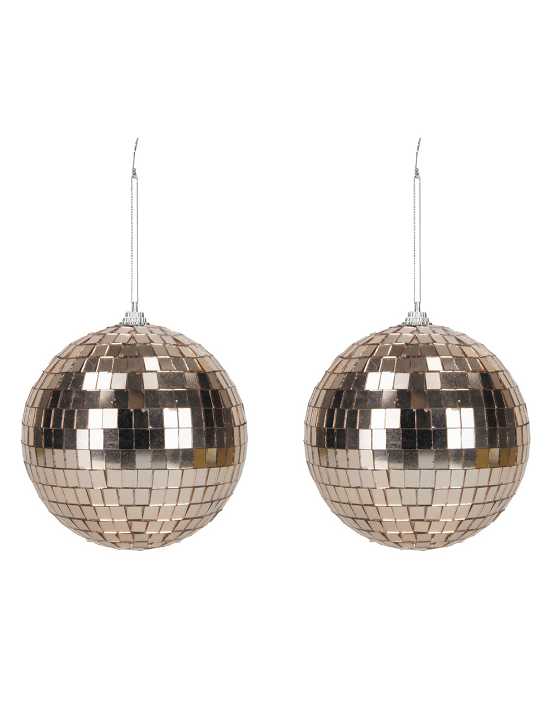 Rozzařte svou výzdobu s tímto setem 2 růžově zlatých disco koulí o průměru 10 cm!