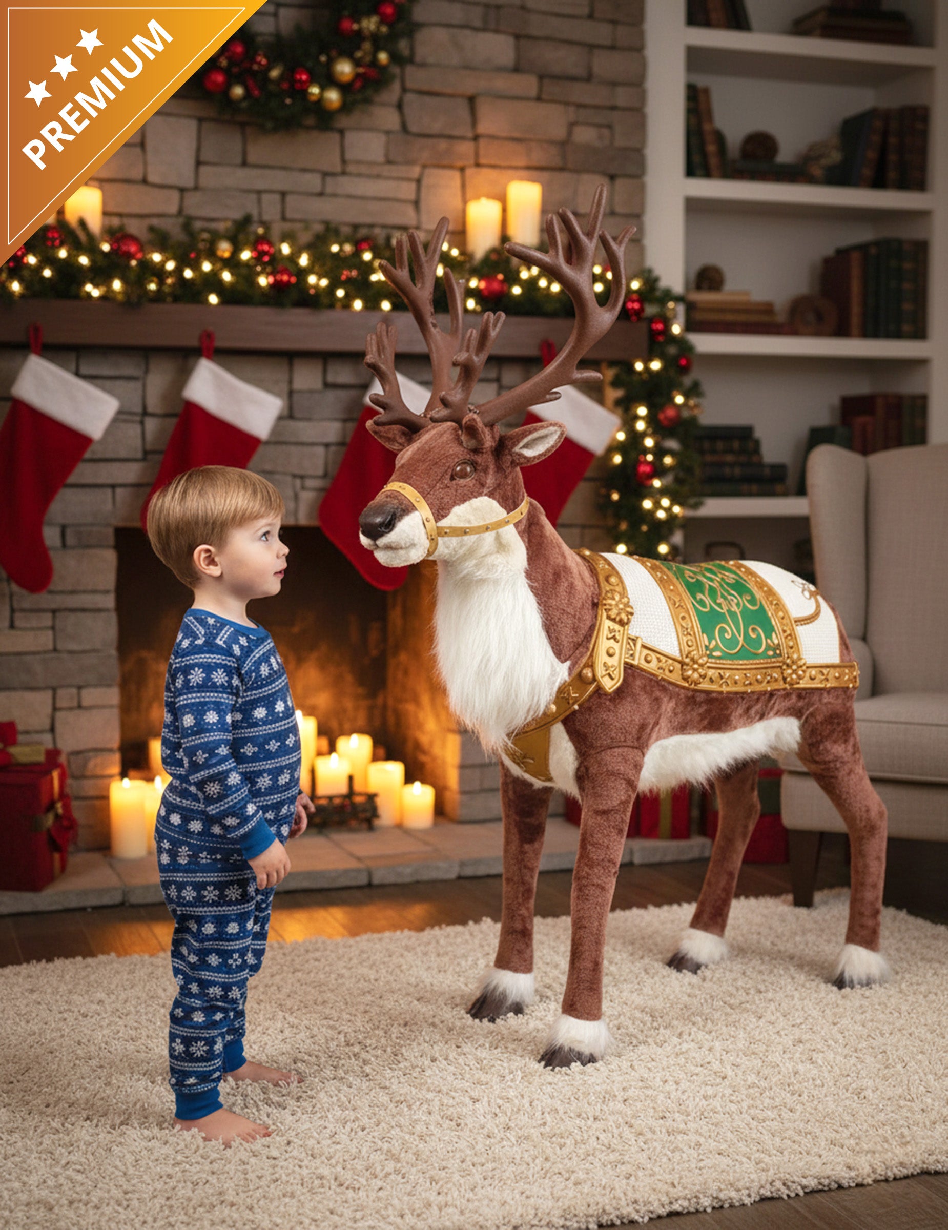 Tato animovaná vánoční dekorace se sobíkem měří 143 cm Vneste do svého domova nádech magie. S měkkou hnědou srstí, hedvábně bílou hřívou a zlatými a zelenými ozdobami vypadá tento velký sob, jako by přímo vyšel z dílny Santy. Jeho realistické pohyby hlavy a vánoční melodie vytvářejí magickou atmosféru, ideální pro potěšení dětí i dospělých u vánočního stromečku nebo krbu. Tento model je napájen ze sítě 220–240 V střídavého proudu, což umožňuje jednoduché a nepřetržité používání po celou dobu svátků. Tento majestátní sob, který se perfektně hodí k ozdobení vašich svátečních dekorací, oživí vaše večery a krásně doplní teplou a světlou vánoční atmosféru.