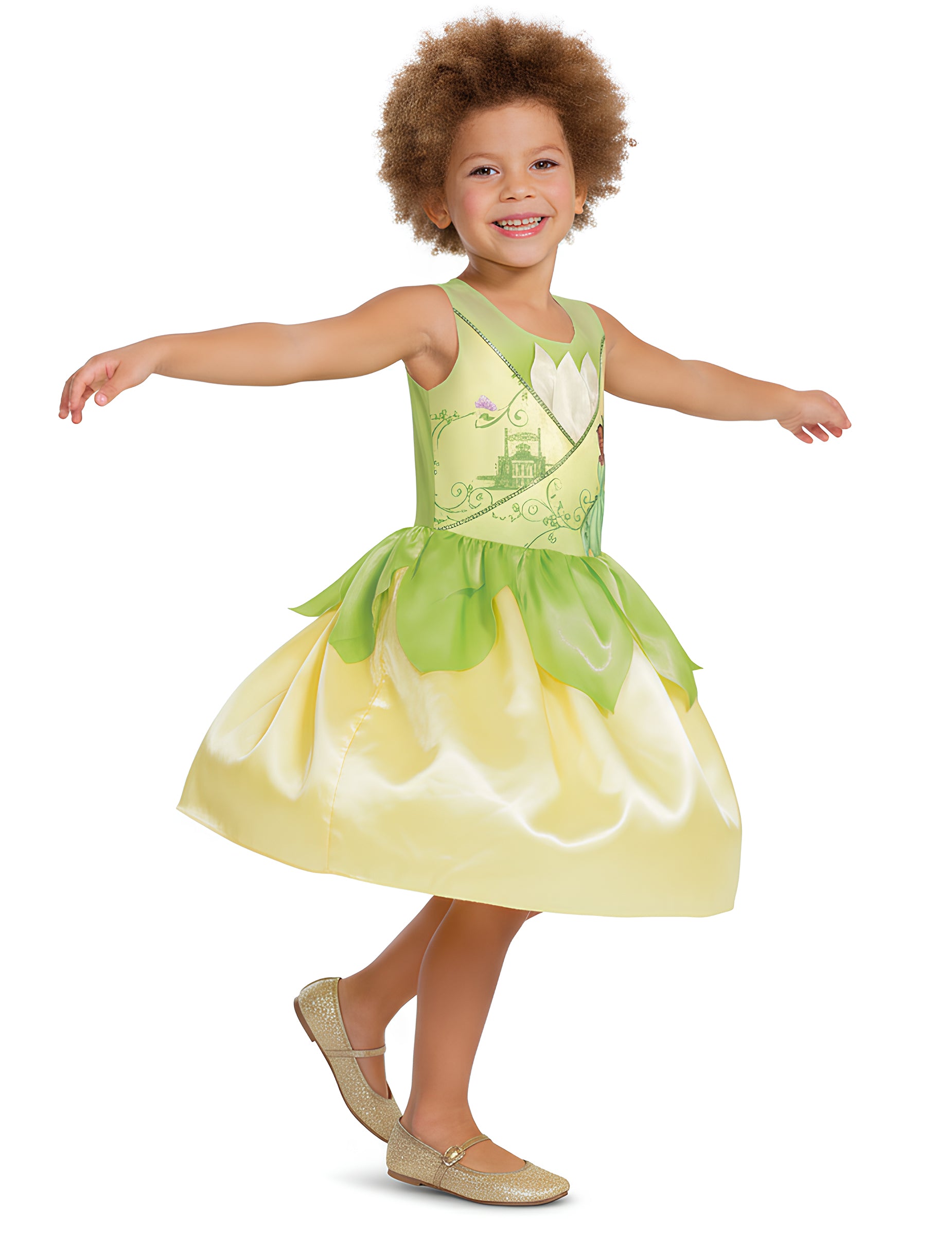 Lehký a pohodlný, tento kostým promění vaše dítě v princeznu Tianu, připravenou prožít svůj vlastní pohádkový příběh. Ideální na karneval, narozeniny nebo jakýkoli kouzelný den.