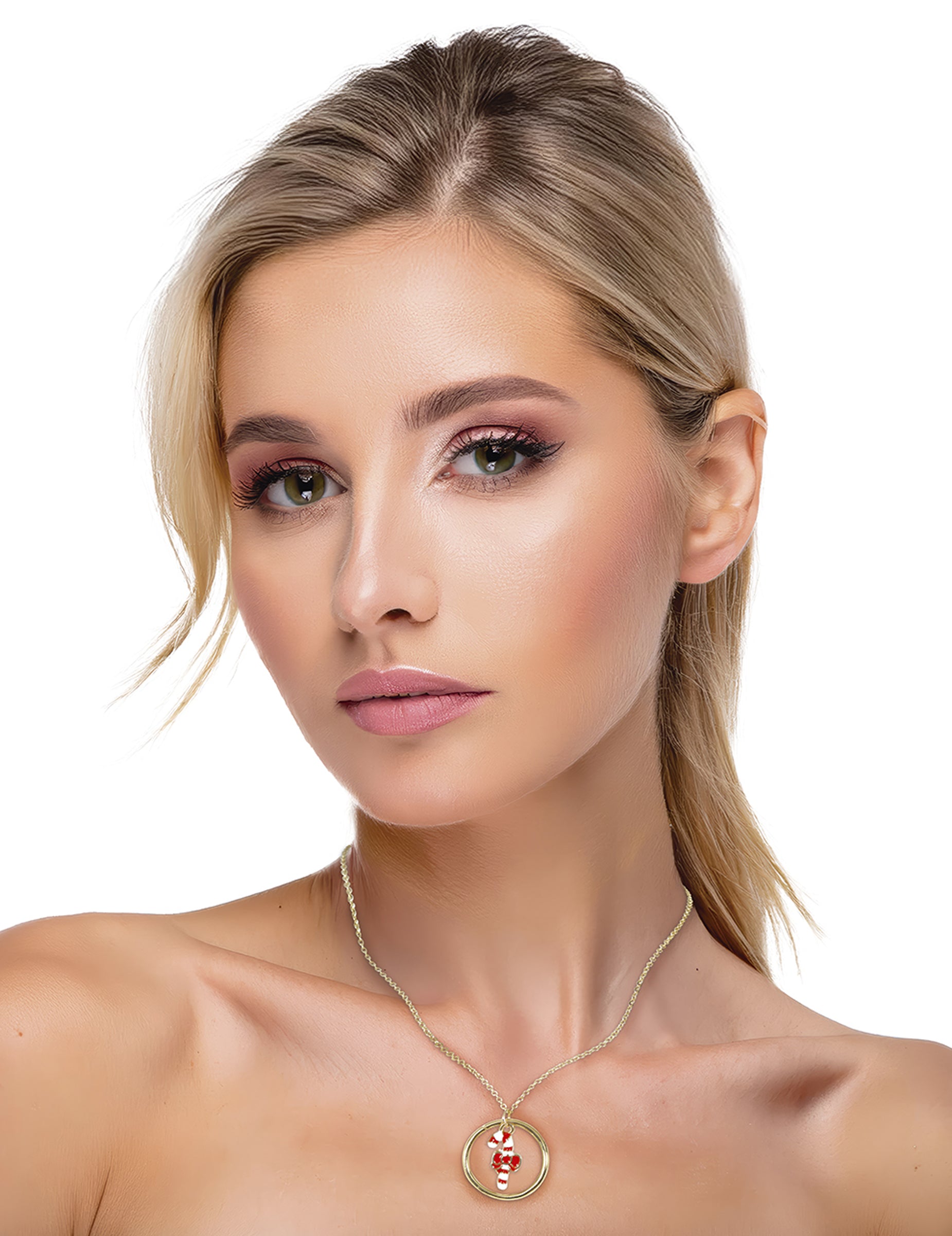 Tento vánoční náhrdelník ve tvaru cukrové hůlky dodá vašemu outfitu elegantní a slavnostní nádech. Jeho kruhový zlatý přívěsek zdobí červenobílá cukrová hůl zdobená malou zlatou mašlí, ikonickým symbolem svátků. Jemný, lesklý řetízek doplní jakýkoli vzhled, od večerních šatů až po ležérní oblečení. Rafinovaný doplněk, který přináší tu správnou dávku kouzla a třpytu pro stylovou oslavu Vánoc.