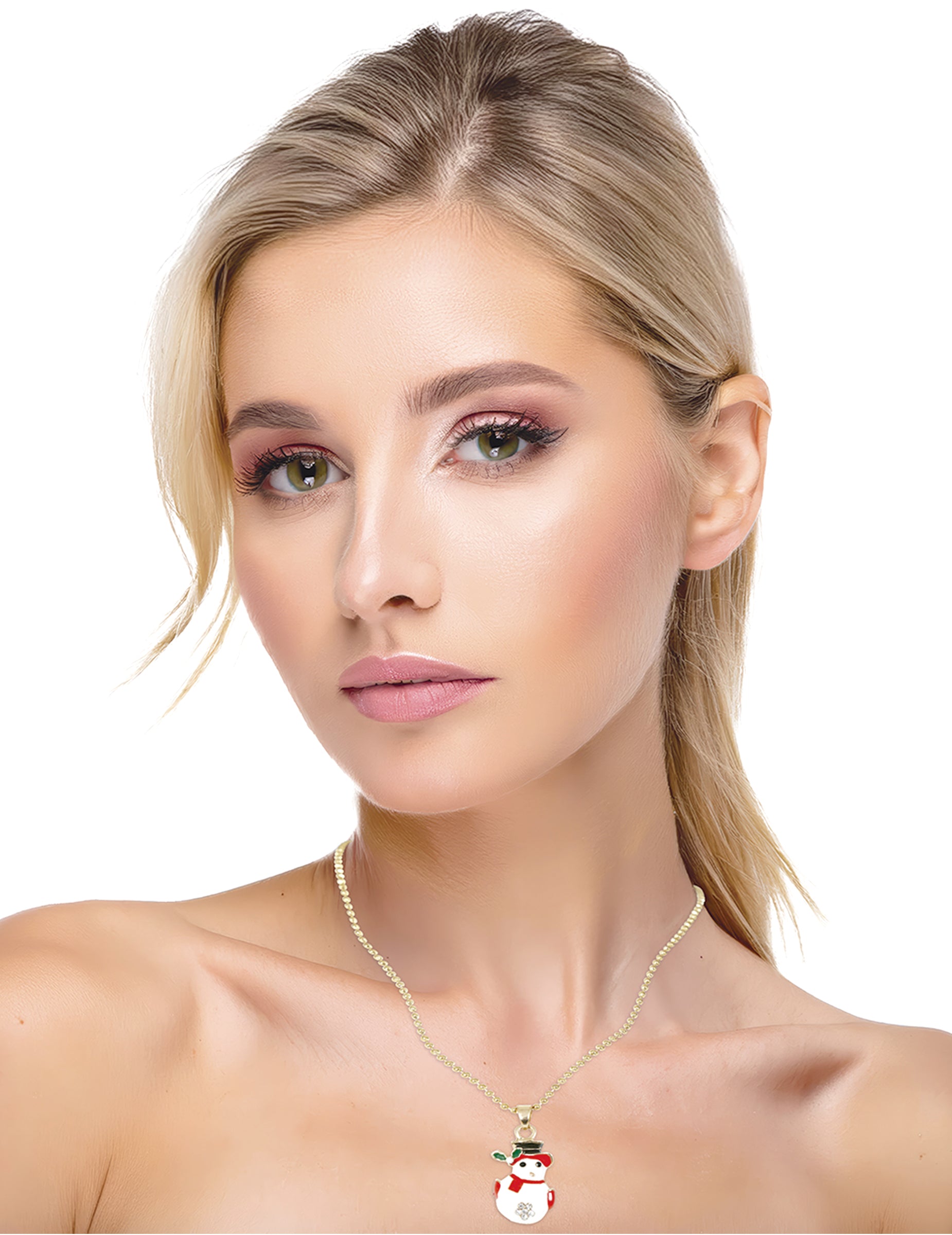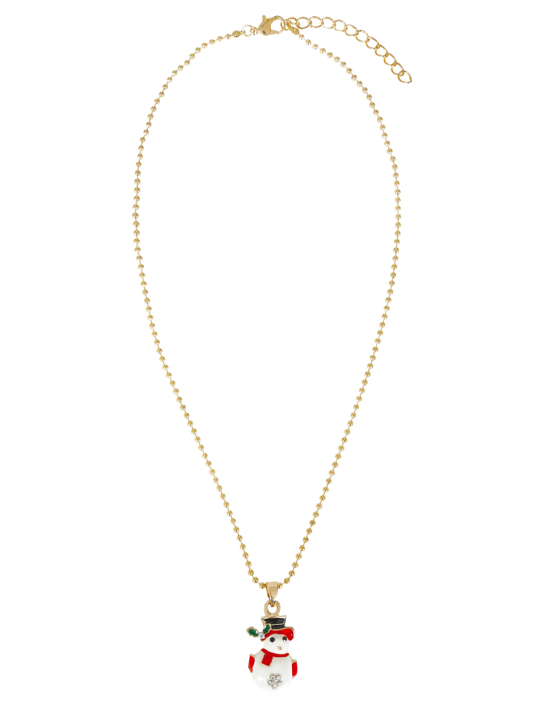 Tento vánoční přívěsek s motivem sněhuláka dodá vašemu outfitu nádech zimní nálady. Přívěsek, zavěšený na jemném zlatém řetízku, zobrazující rozkošného sněhuláka v černé čepici, červené šále a třpytivých zlatých detailech, doplní formální večerní outfit i ležérní vánoční outfit. Je to rozkošný a hravý šperk, ideální pro stylové šíření vánoční magie.