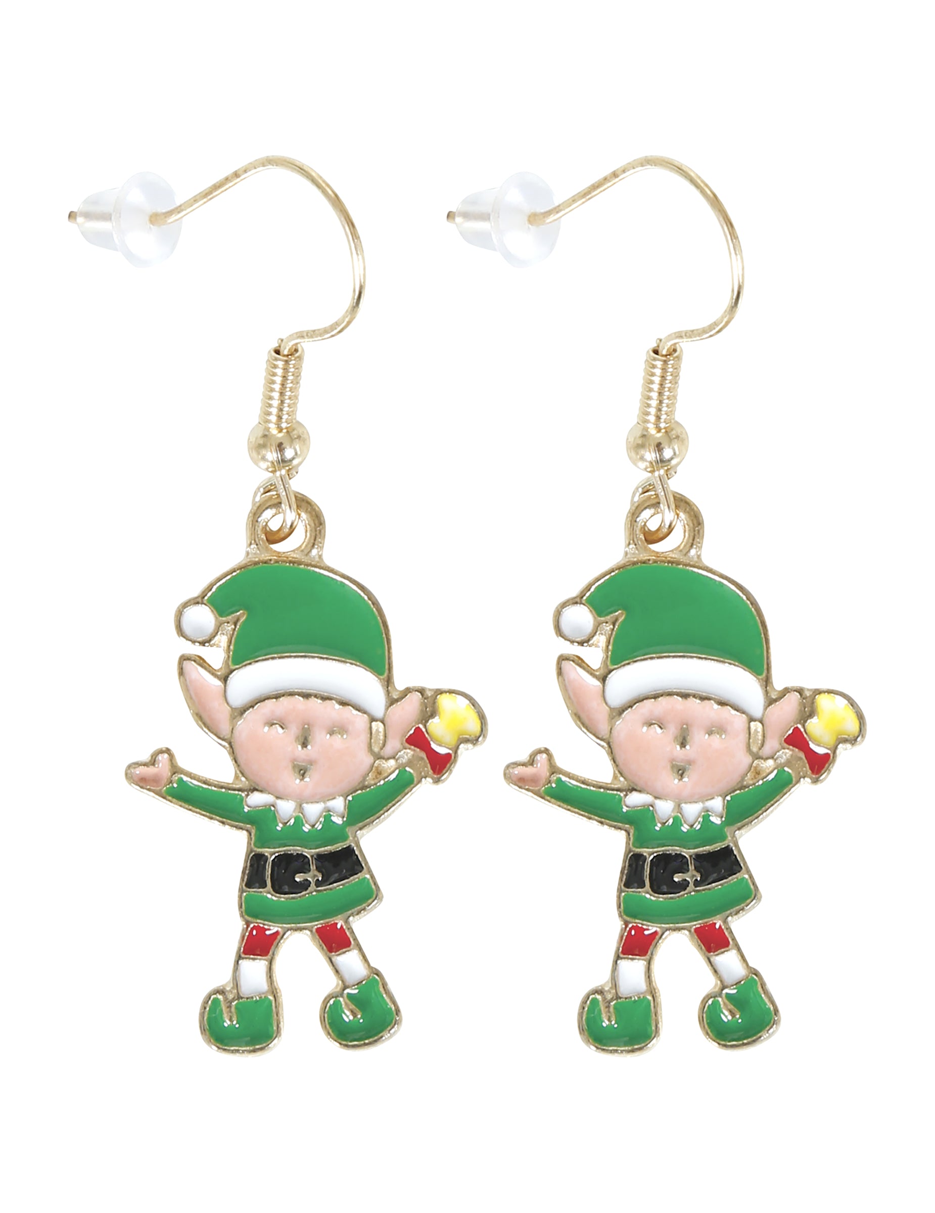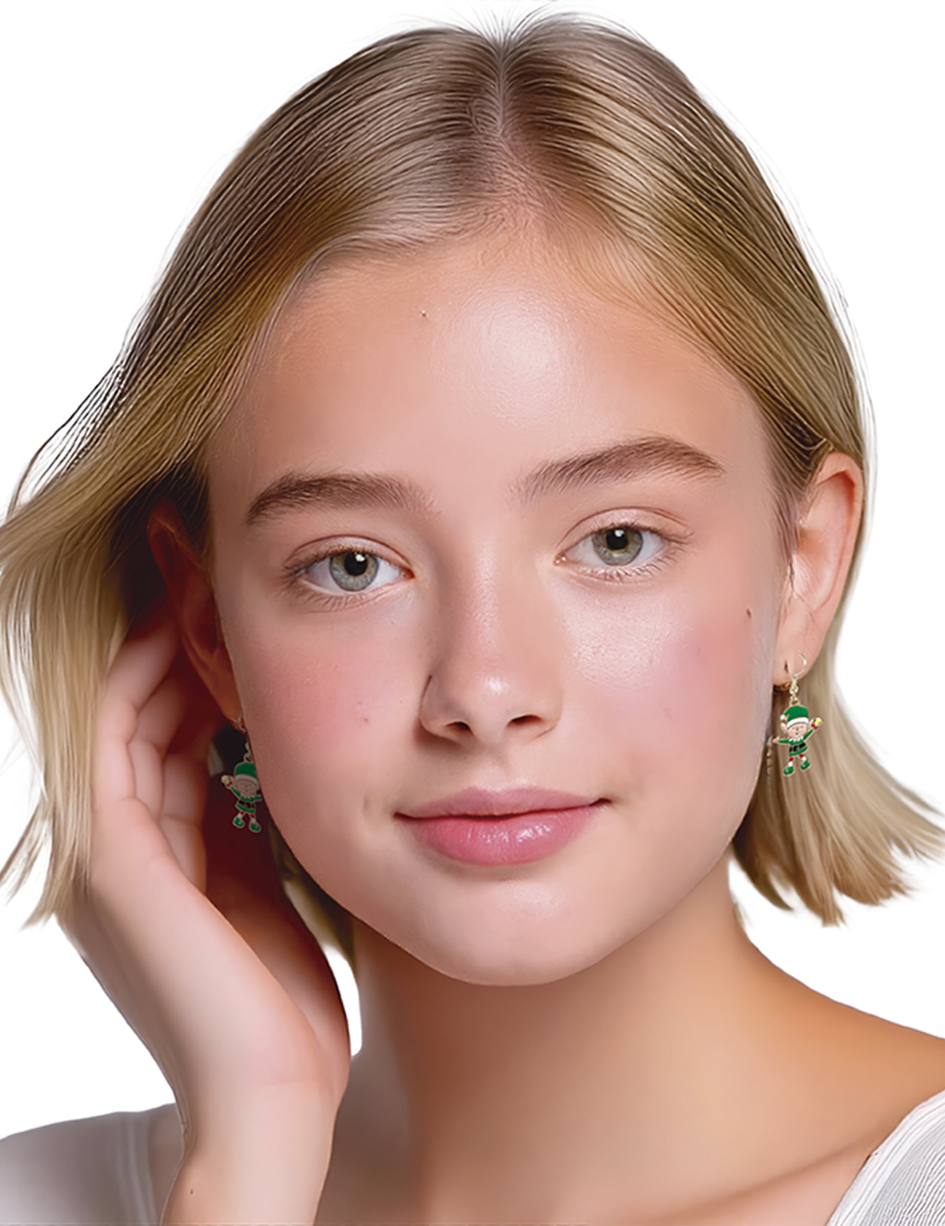 Tyto kovové náušnice s motivem vánočních skřítků dodají vašemu svátečnímu outfitu zábavný a třpytivý nádech. Každý přívěsek představuje veselého skřítka oblečeného do zelené a červené, což jsou ikonické barvy tohoto období. Jejich lehká zlatá konstrukce se při každém kroku krásně pohybuje, zachytává světlo a přitahuje pozornost. Ideální pro vánoční večeře, večírky nebo dokonce pro každodenní nošení během svátků.