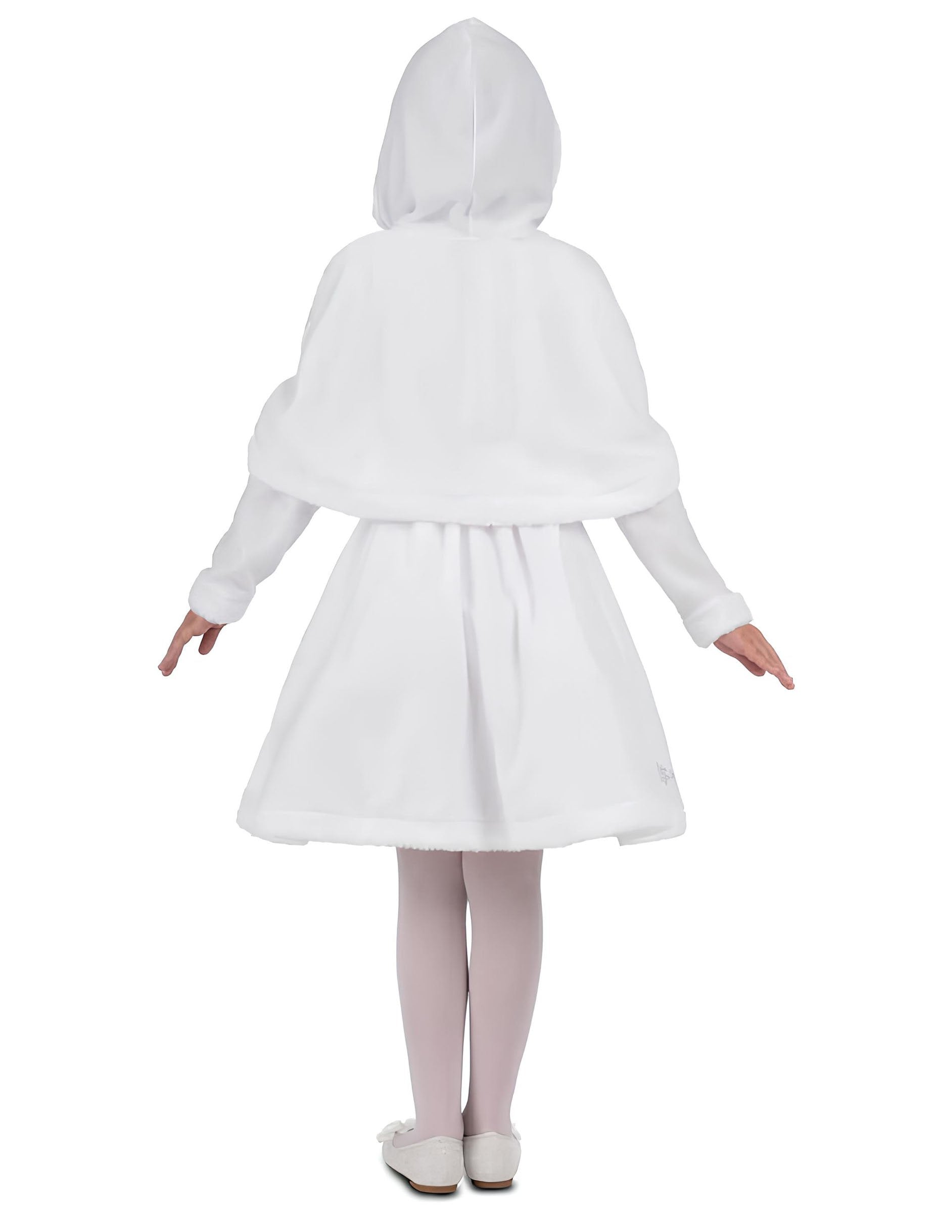 Tento kostýmek vnáší do vánočních svátků kouzelnou atmosféru díky elegantním bílým šatům a měkkému plášti s kapucí, který dítě jemně zahalí. Celý kostým vytváří zářivý vzhled, ideální pro plné prožití kouzla svátků. Tento bílý kostým paní Clausové pro dívky kombinuje splývavé šaty zdobené stříbrnými akcenty a třpytivý pásek, který decentně zvýrazňuje postavu. Sladěný plášť dodává kostýmu noblesní zimní nádech a je dokonalým doplňkem slavnostních vánočních chvil. Kostým, který vyniká všechnou sladkost a jiskru tohoto kouzelného období.