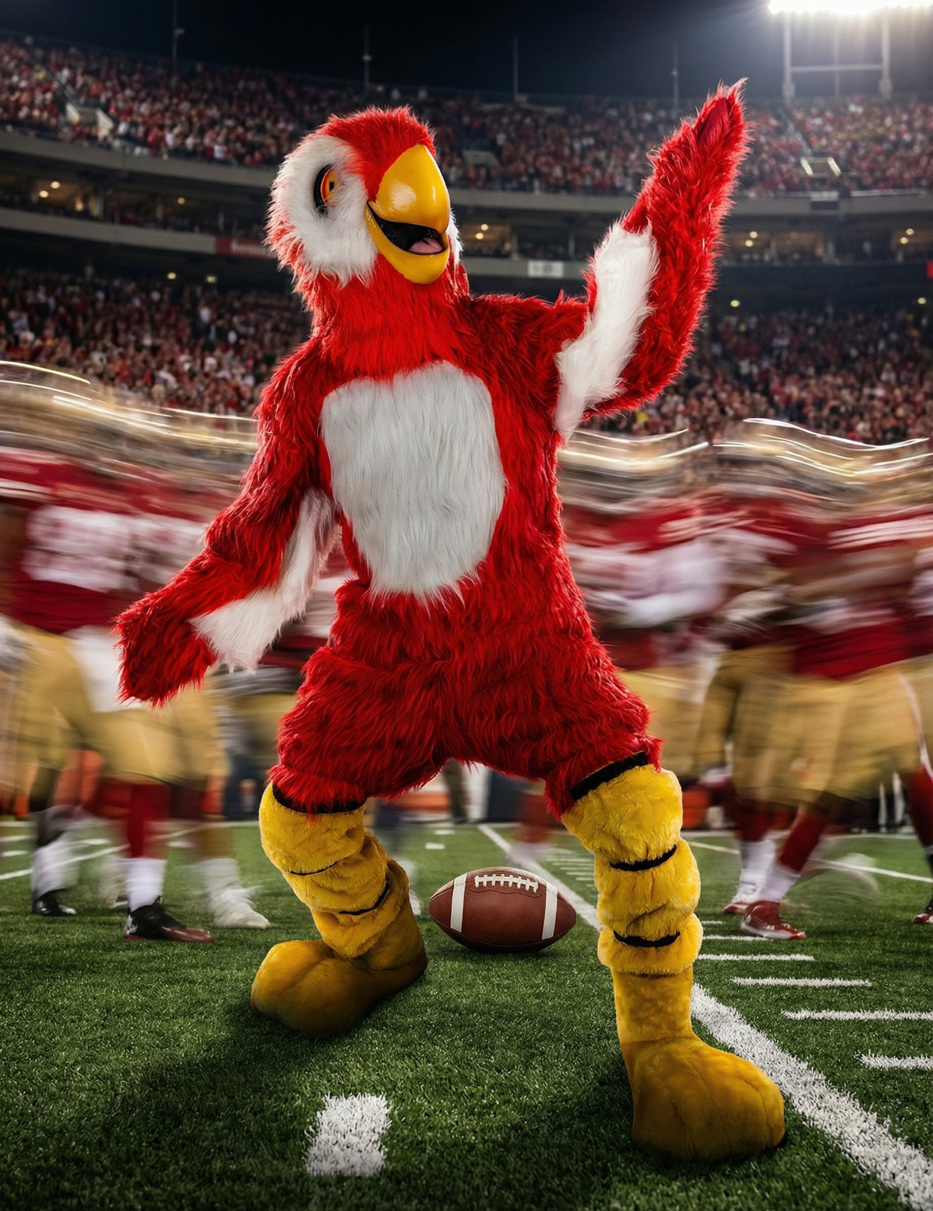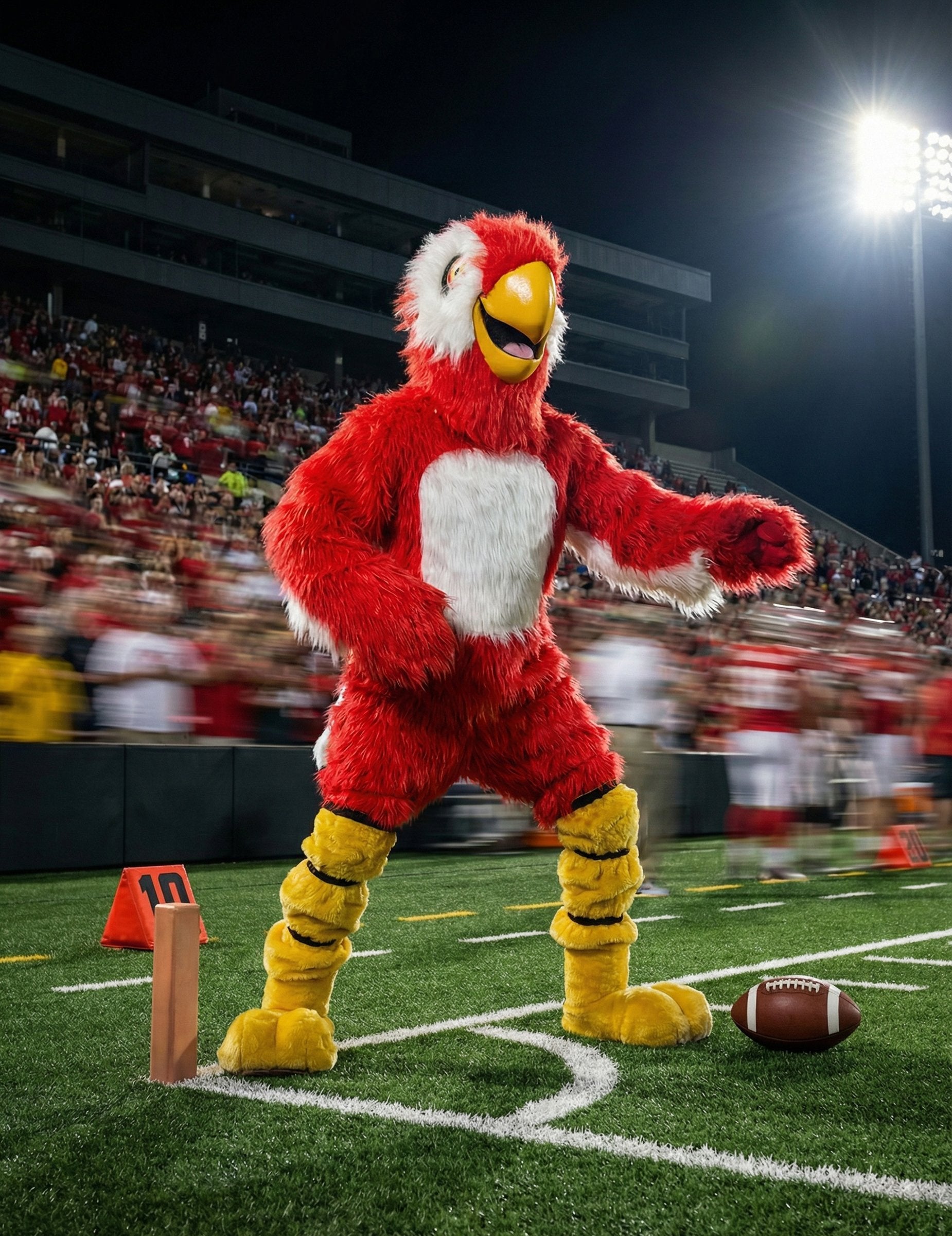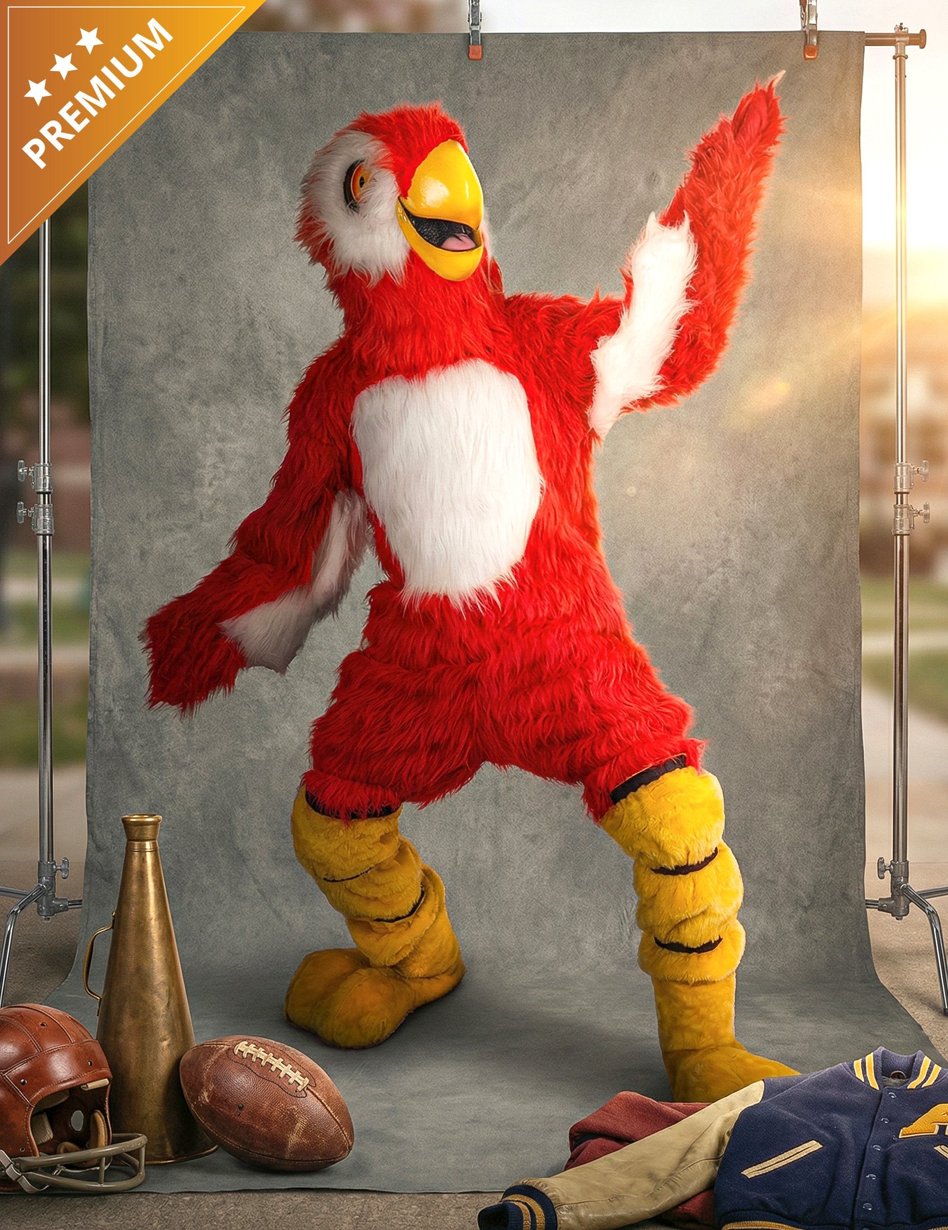 Tento kostým maskota červeného papouška pro dospělé obsahuje měkký overal, velkou masku papouška, rukavice a návleky na boty, které tvoří kompletní outfit. Červený overal má na hrudi velký bílý panel, který připomíná skutečného barevného papouška. Maska zobrazuje velkou hlavu s výrazným žlutým zobákem a výrazným okem. Rukavice a návleky na boty rozšiřují efekt až na podlahu a vytvářejí jednotný vzhled. Perfektní maskot, který dodá barevný nádech karnevalu, narozeninové oslavě nebo slavnostní události.