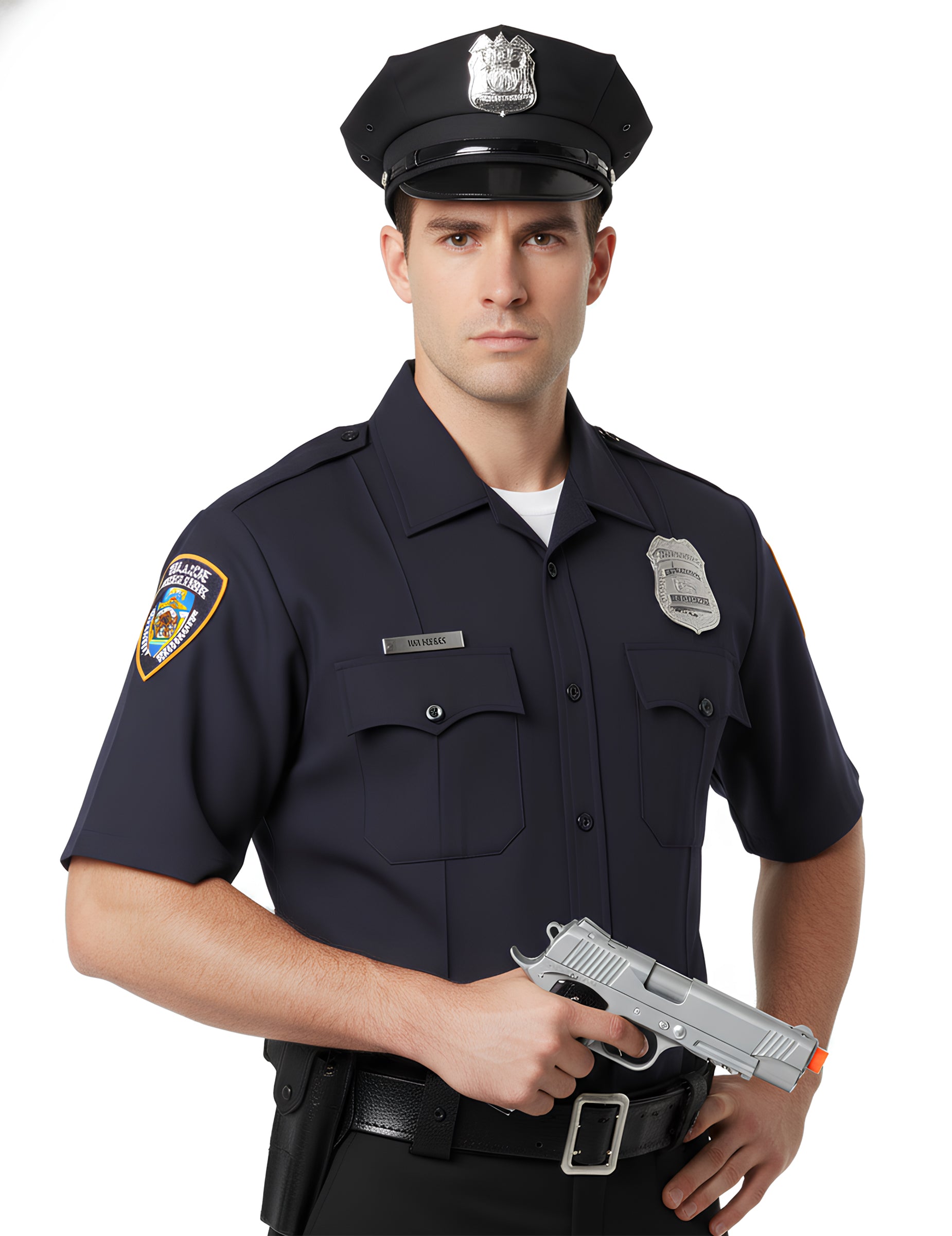 Tato 18palcová kovová policejní pistole cm Tento jednoduchý doplněk se perfektně hodí k policejnímu outfitu. Jeho rovný tvar připomíná moderní zbraně, tmavá rukojeť a barevná špička jasně naznačují, že se jedná o hračku. Díky kompaktním rozměrům se snadno drží a můžete si hrát na ochránce nebo policistu. Ideální doplněk na karneval, kostýmní večírek nebo kostým policisty.