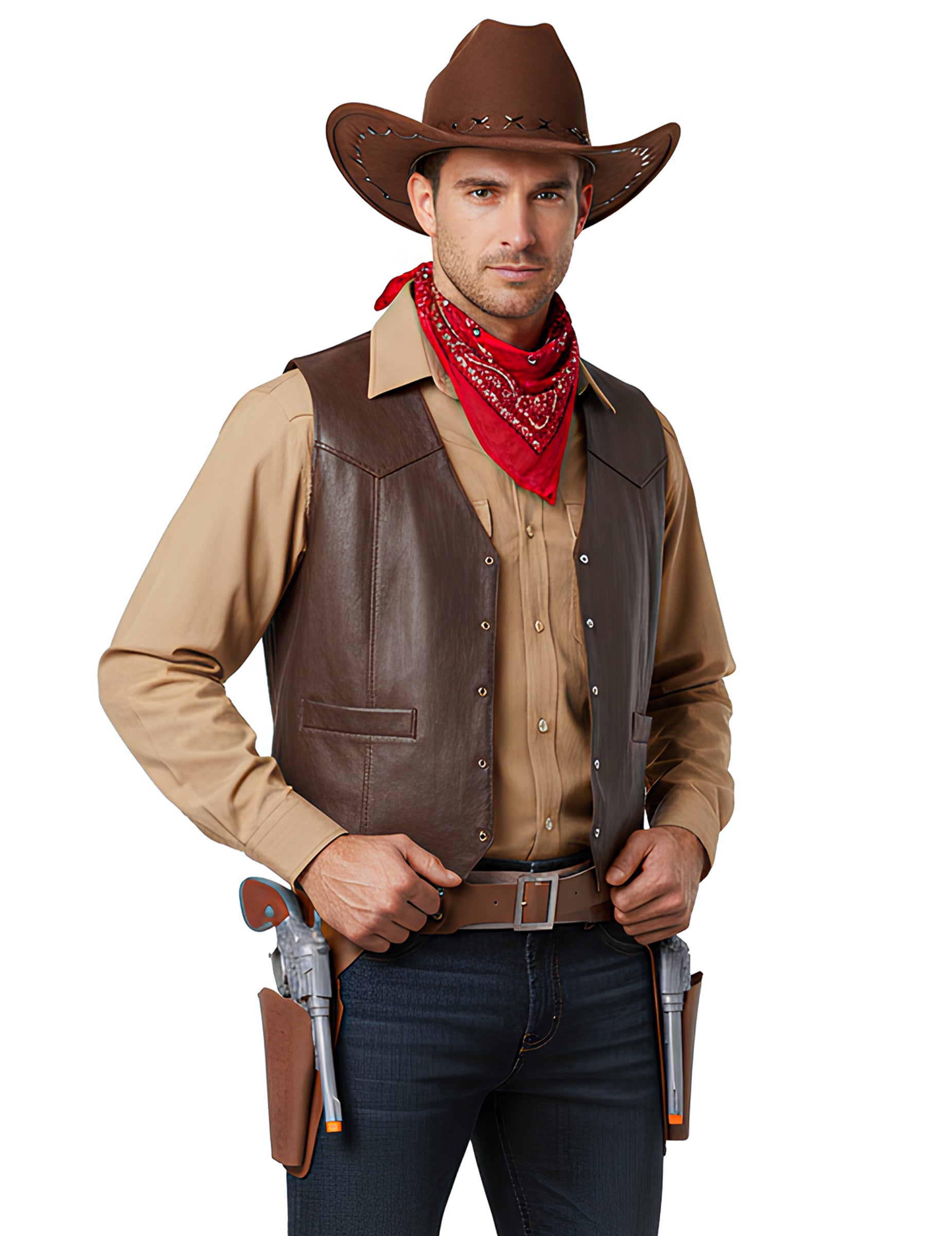 Tato kovbojská sada opasku obsahuje nastavitelný opasek a dvě pistole, které se perfektně hodí k doplnění outfitu z Divokého západu. Hnědý opasek se snadno přizpůsobí pasu a umožňuje nosit obě pistole na obou stranách pro klasický kovbojský vzhled. Revolvery mají barevné hroty, které vám připomínají, že se jedná o párty doplňky, a zároveň si zachovávají rozpoznatelný westernový styl. Ideální doplněk na karneval, večírek s westernovou tematikou nebo jako kostým šerifa.