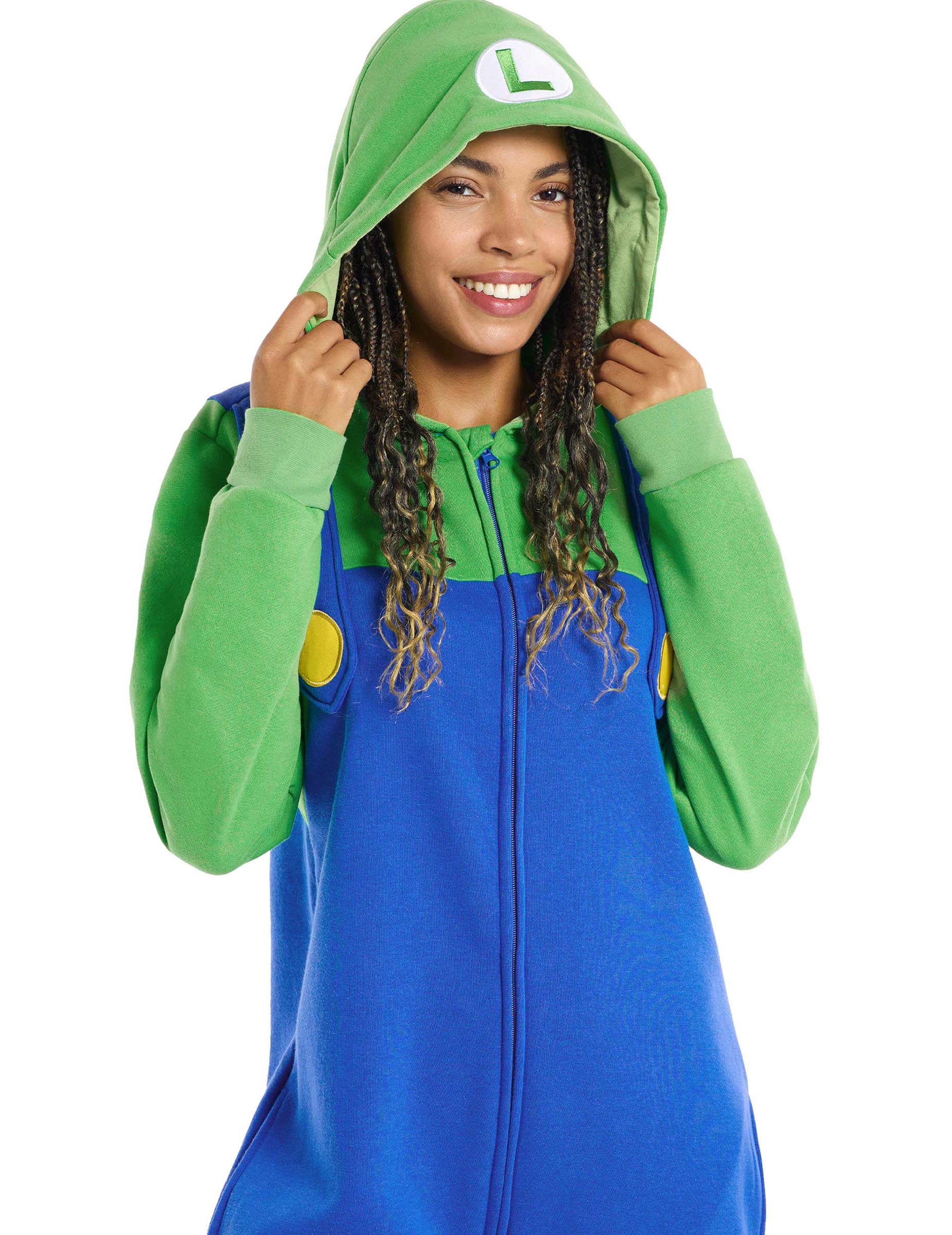 Tato kombinéza Luigi™ pro dospělé přebírá ikonické barvy postavy se zelenou mikinou s kapucí a modrou částí ve stylu laclových kalhot pro okamžitě rozpoznatelný vzhled.