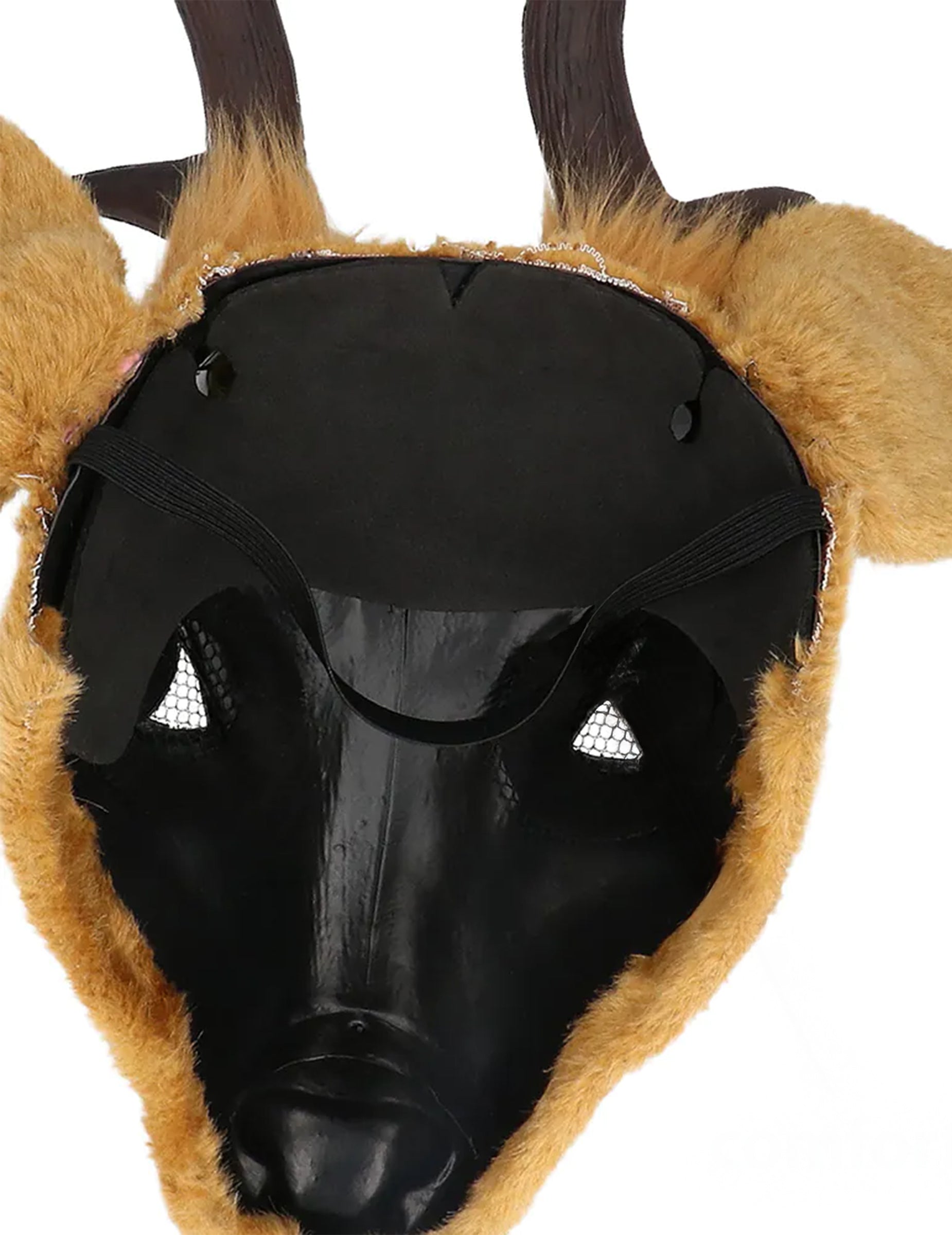 Tato polomaska z plyše jelen pro dospělé zaujme výrazným vzhledem díky své měkké srsti a impozantním parohům, které okamžitě přitahují pozornost. Je celá pokrytá jednotnou plyší, má výrazně tvarovaný tmavý čenich a velké uši, které podtrhují její zvířecí vzhled. Nenápadná síťovaná oblast před očima umožňuje pohodlné vidění a zároveň zachovává efekt kompletní masky. Je lehká a příjemná na nošení a dodává realistickou jelení identitu na karneval nebo tematické zvířecí večírky a maškarní.