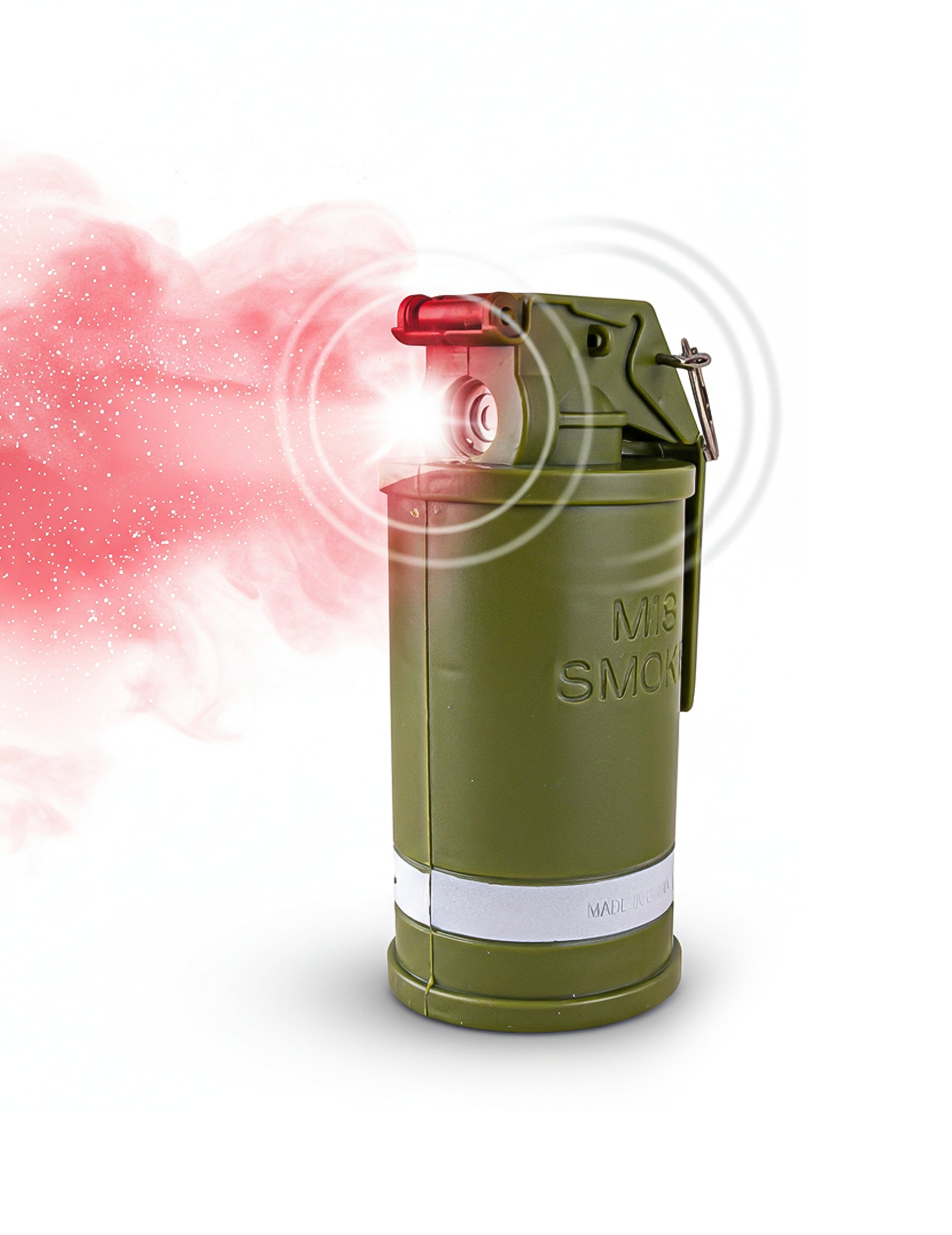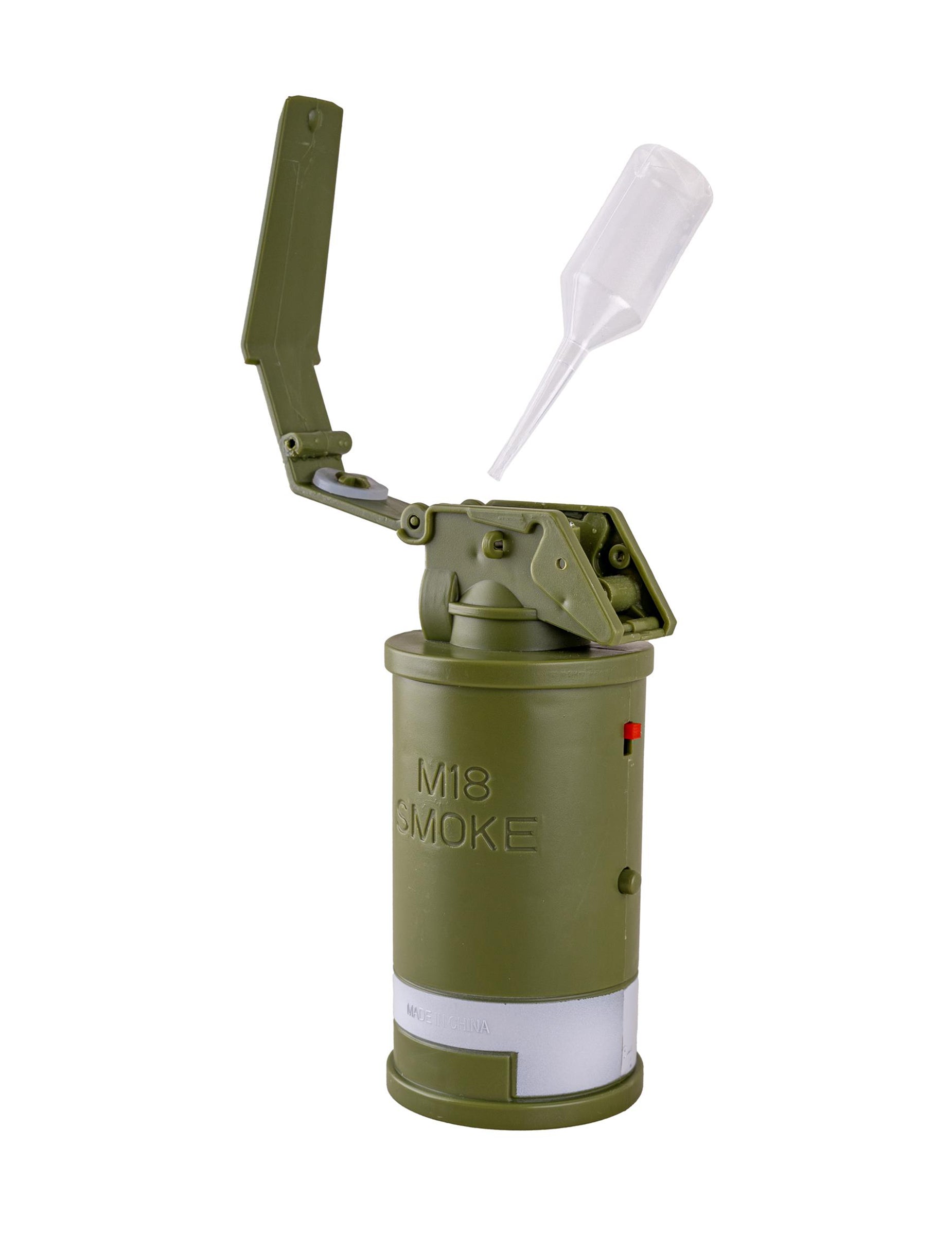 Tento falešný granát s kouřem, zvukem a světlem má design inspirovaný vojenským vybavením, s robustním zeleným tělem a horní pákou, kterou lze otevřít pro přístup k vnitřní nádržce. Funguje na 3 AAA baterie (nejsou součástí balení) a umožňuje vytvářet kouř díky bezpečnému plnění: stačí otevřít horní přihrádku, použít přiloženou pipetu a naplnit vodou nebo vhodnou kouřovou kapalinou (nikdy ne hořlavou kapalinou). Vytažením pojistky se aktivují světelné, zvukové efekty a kouř, opětovným zasunutím se efekt vypne. Perfektní doplněk ke kostýmu vojáka, scénce nebo tematické párty, kde vytvoří zábavný vizuální efekt a udělá vaši postavu ještě více působivou, dynamickou a nezapomenutelnou.
