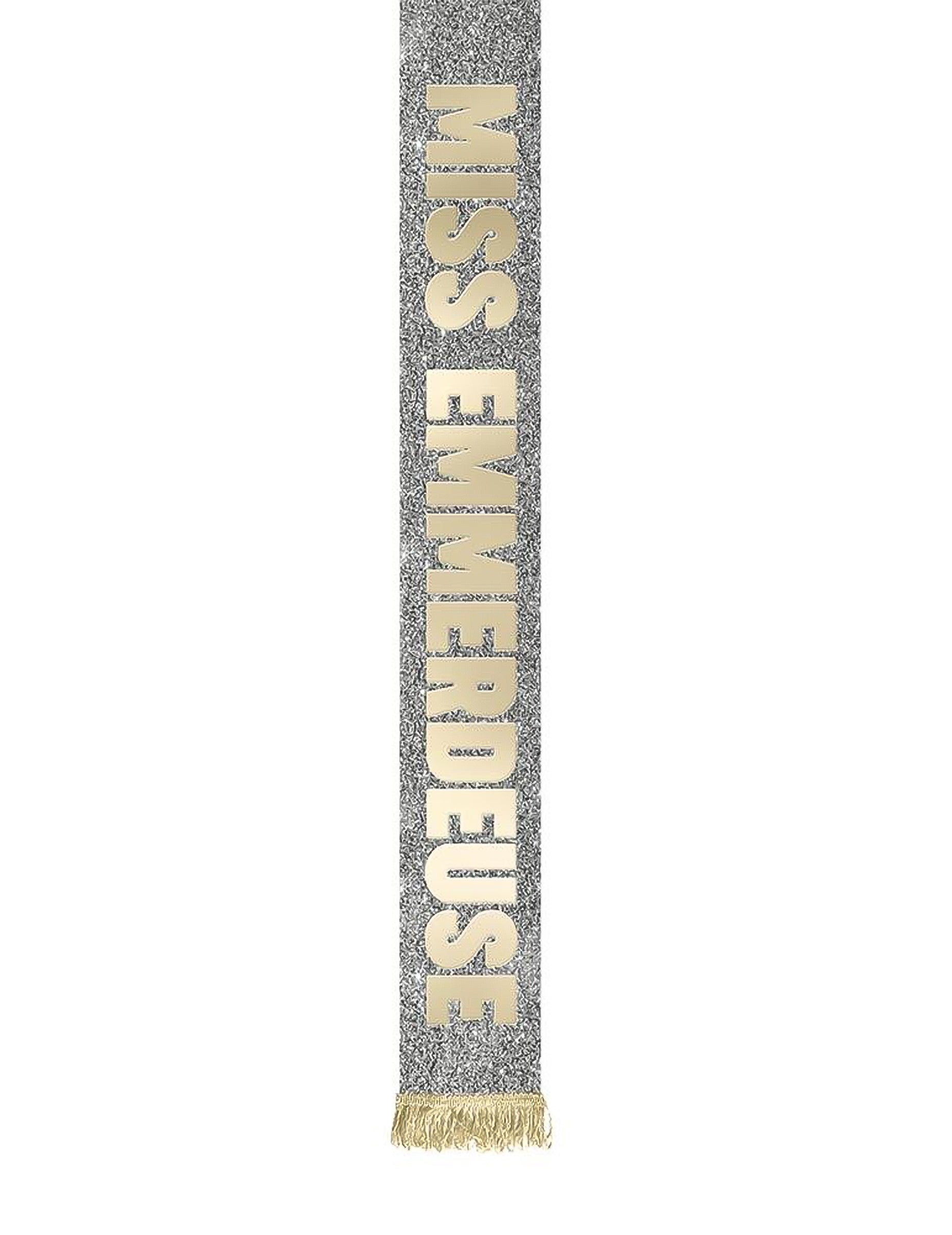Toto Slečna otravný třpytivý šátek zvýrazňuje lesklou látku a okamžitě upoutá pozornost nápisem "Slečno Annoyance"ve zlaté barvě, dokonale viditelné po celé délce.