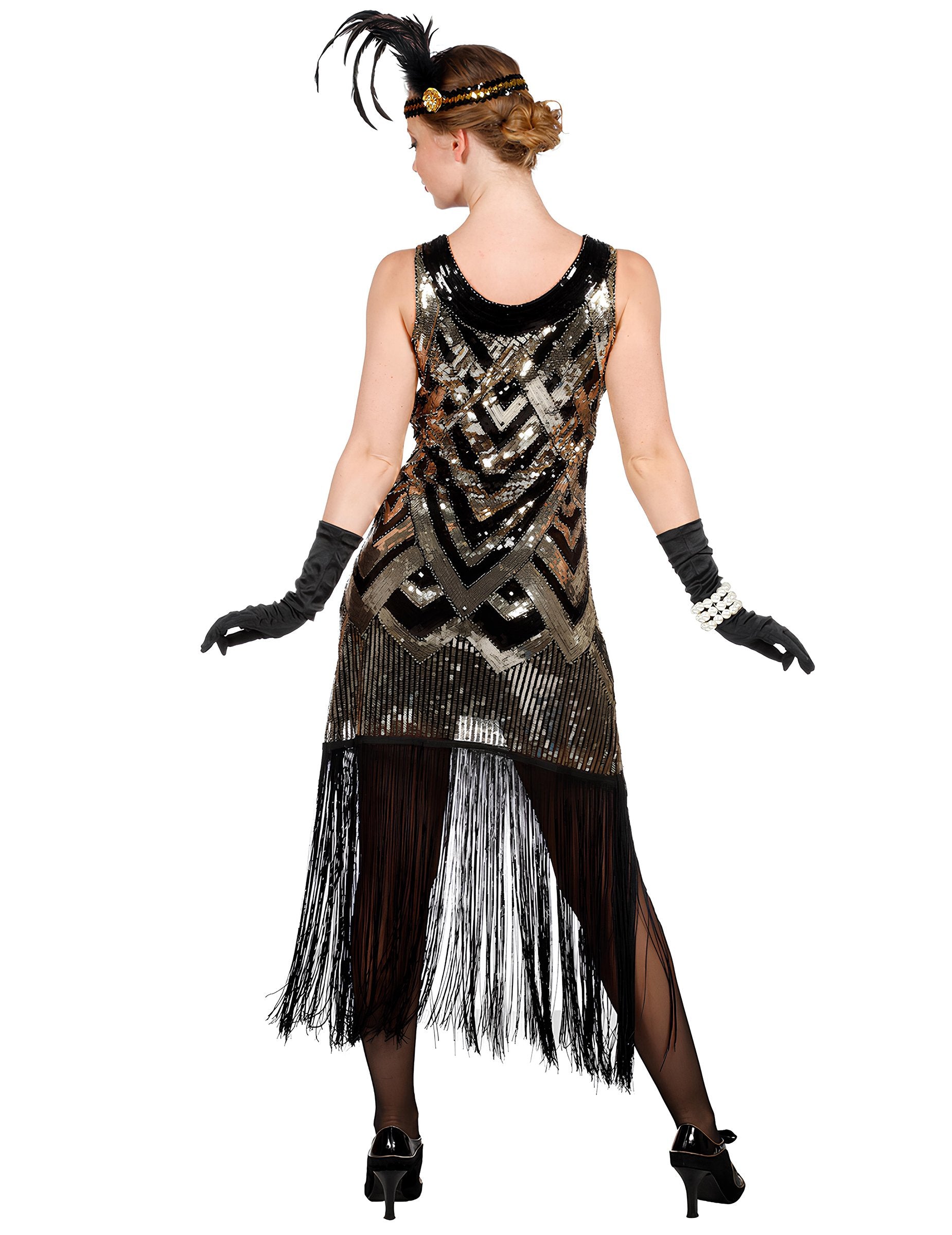 Luxusní černozlatý charlestonový dámský kostým se flitry