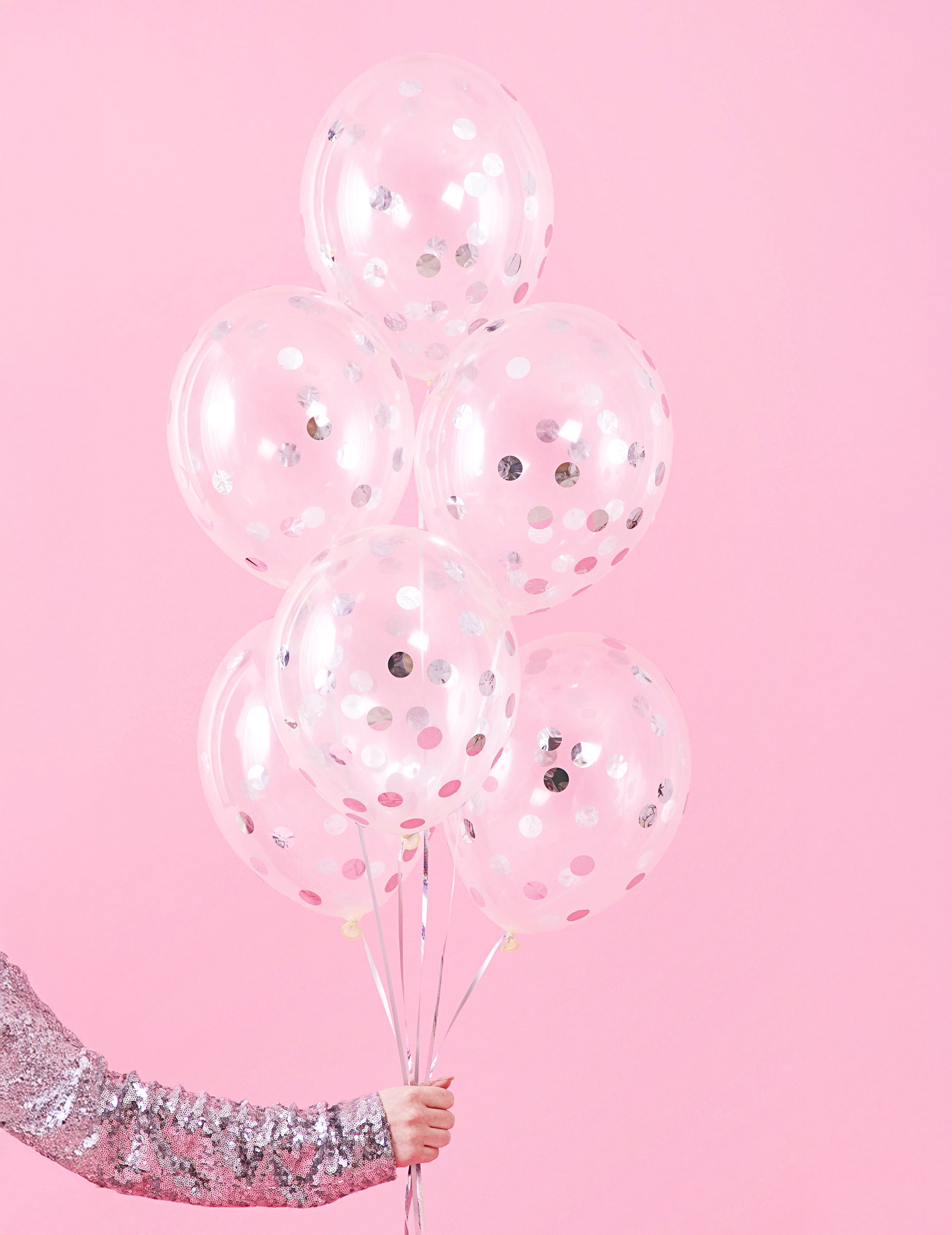 Tyto průhledné balónky se stříbrnými konfety přinášejí decentní dekorativní prvek na vaše slavnostní události.