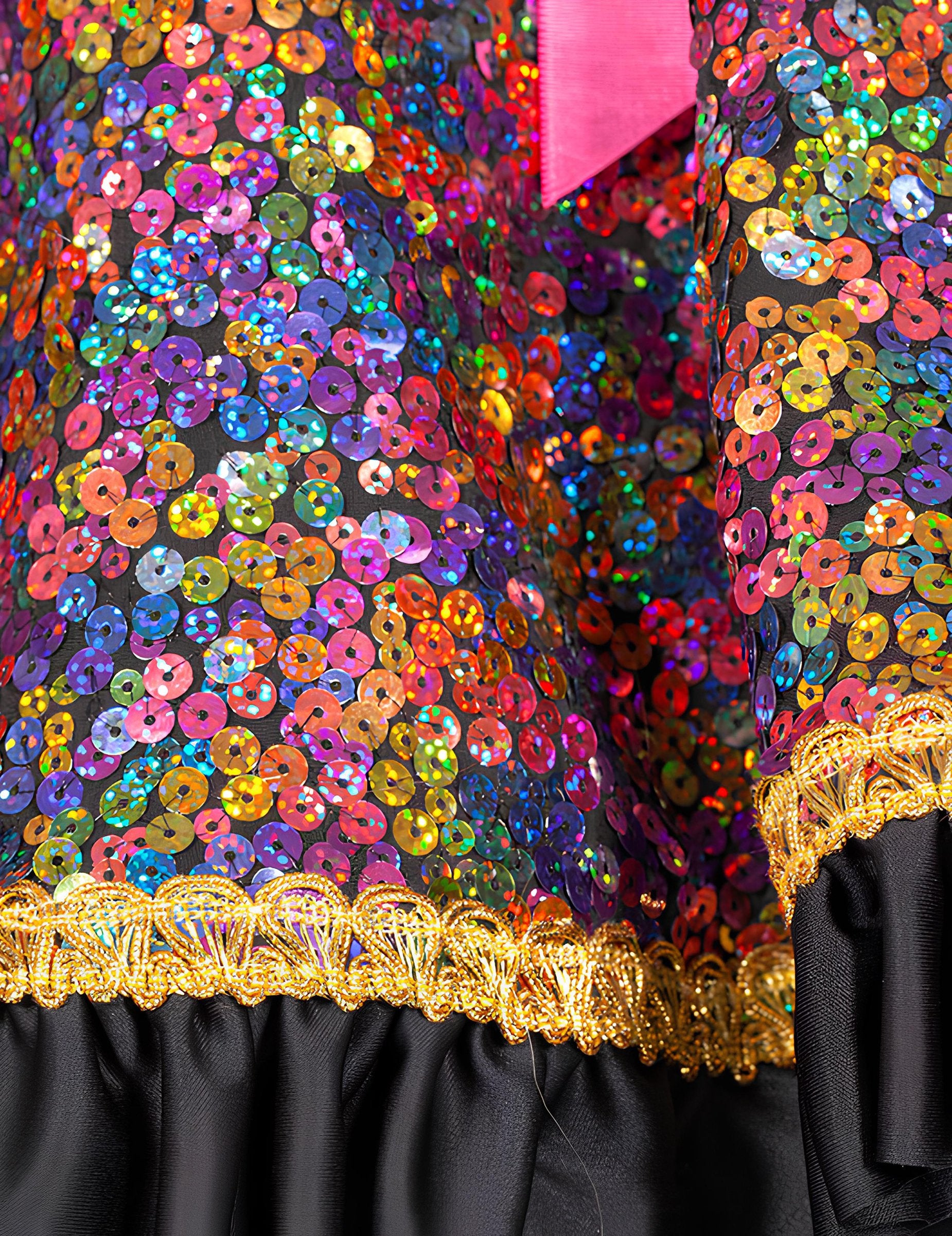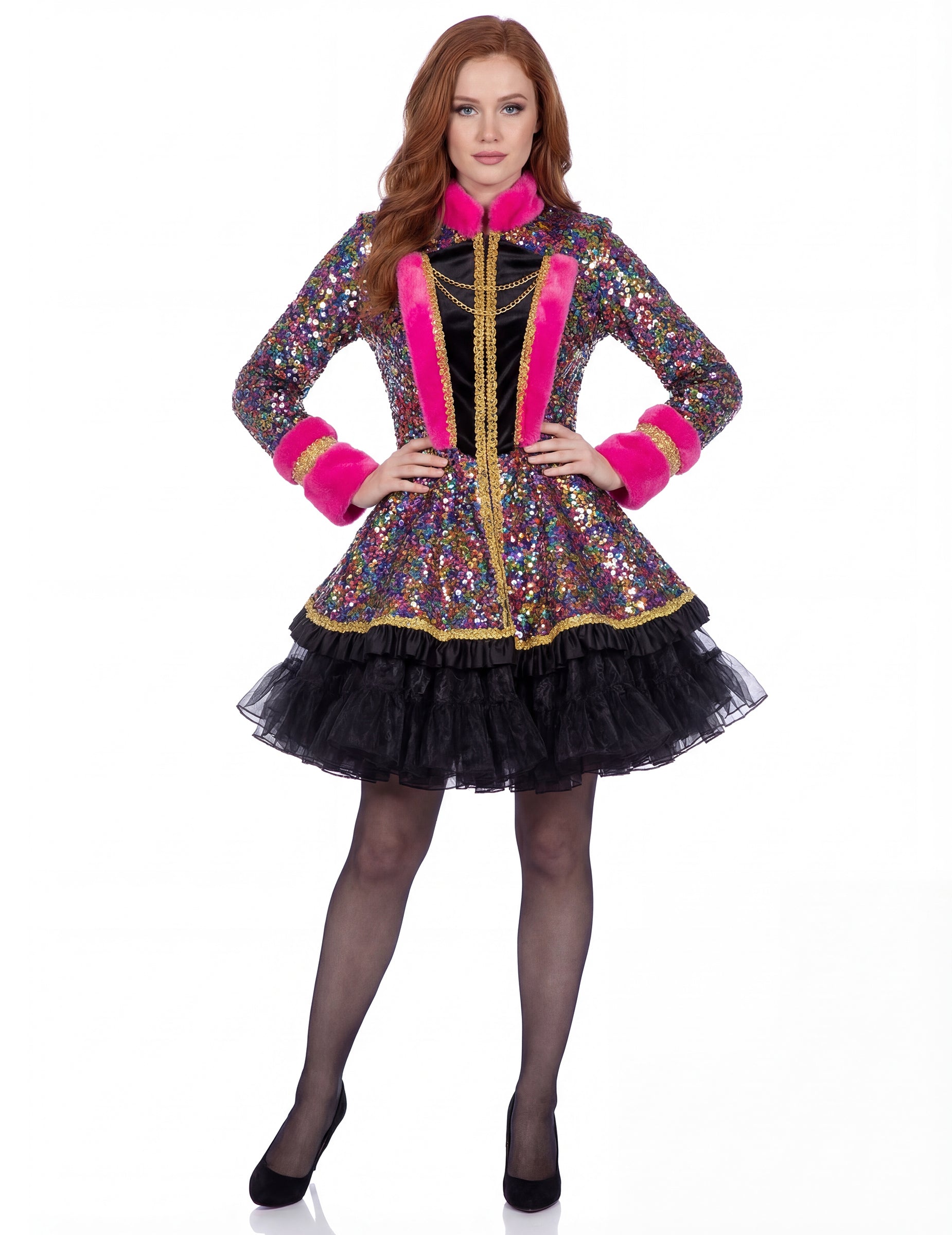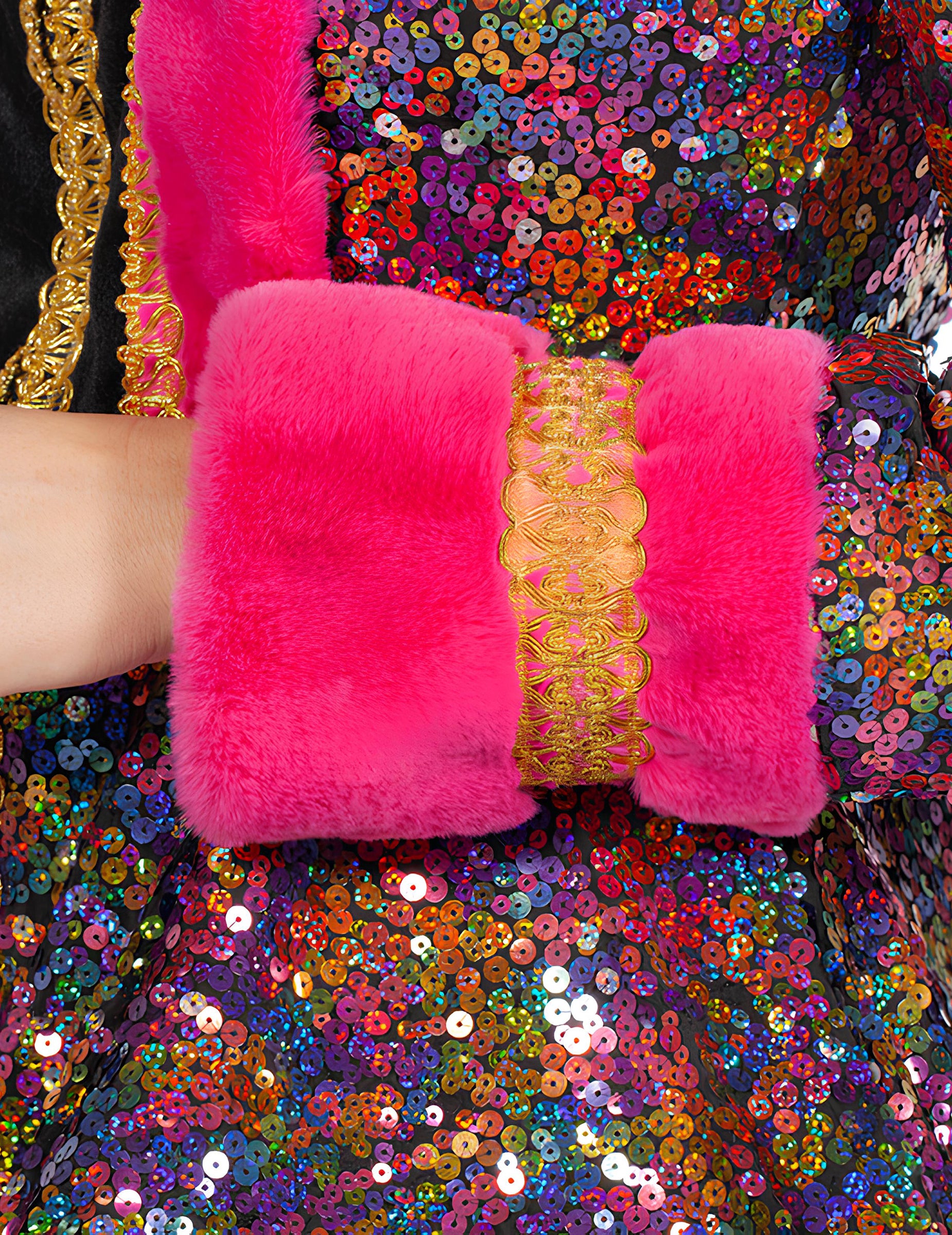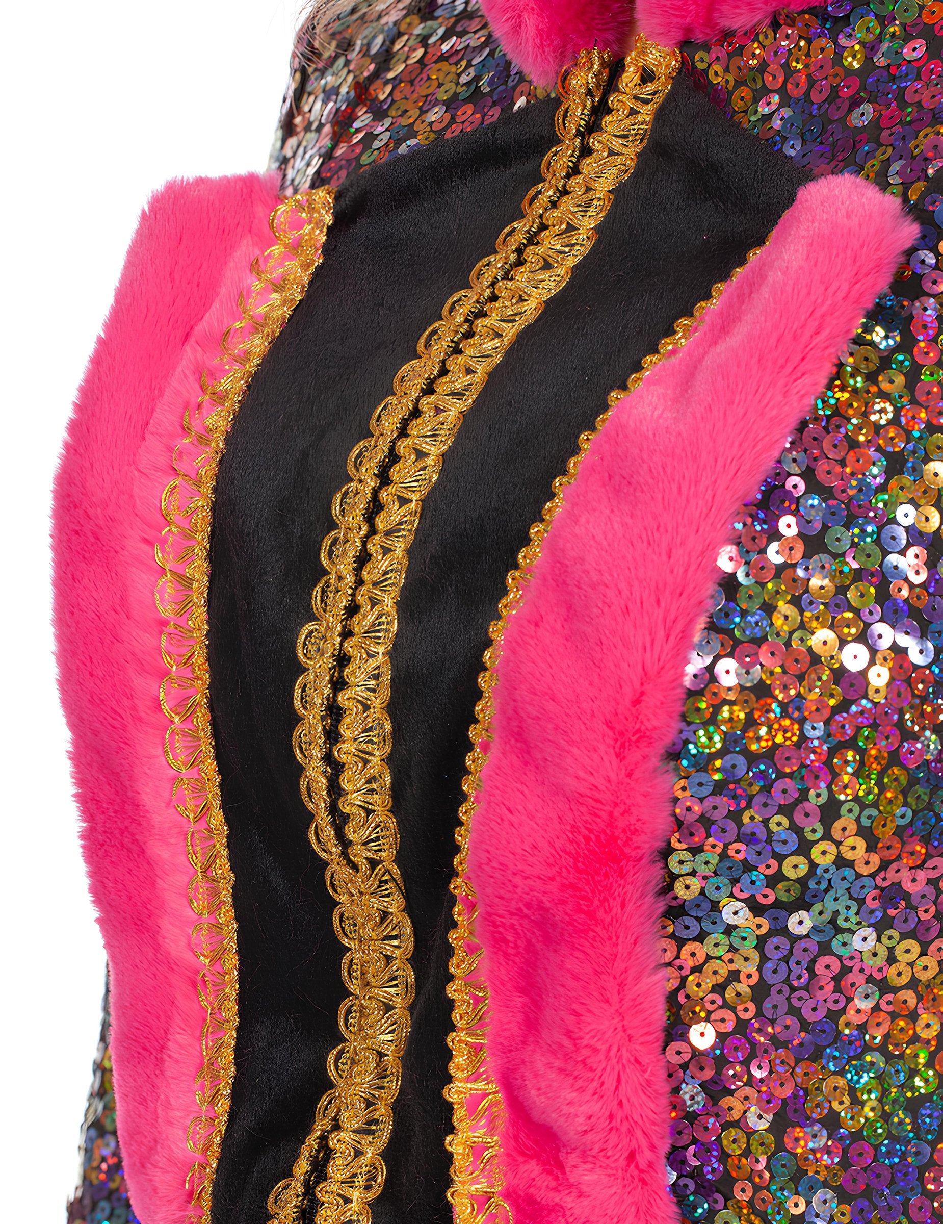 Dámská vícebarevná flitrová bunda nachází své místo během Karneval, z a maškarní párty, z a kostýmní ples, Silvestra nebo slavnostní tématický večer.